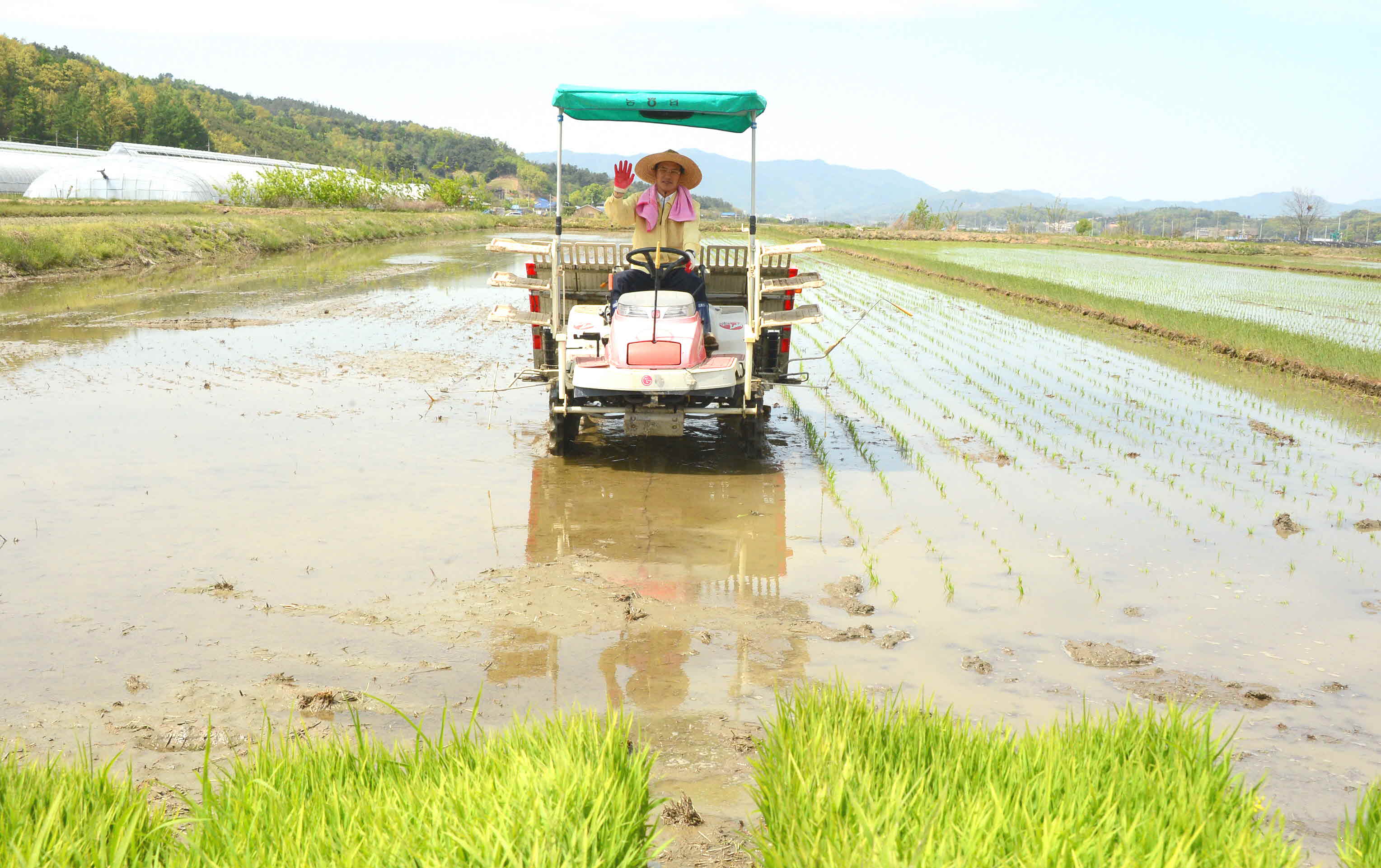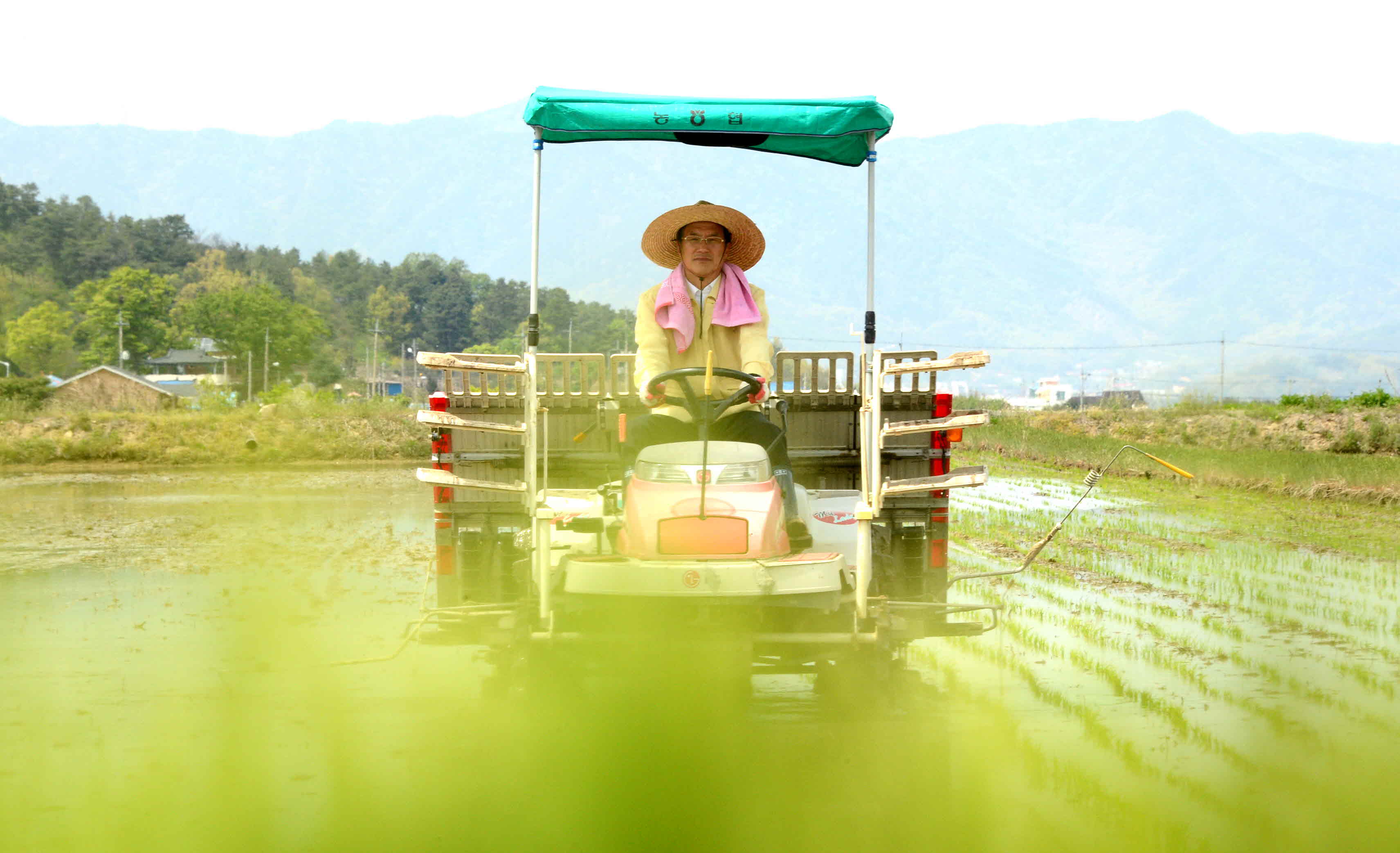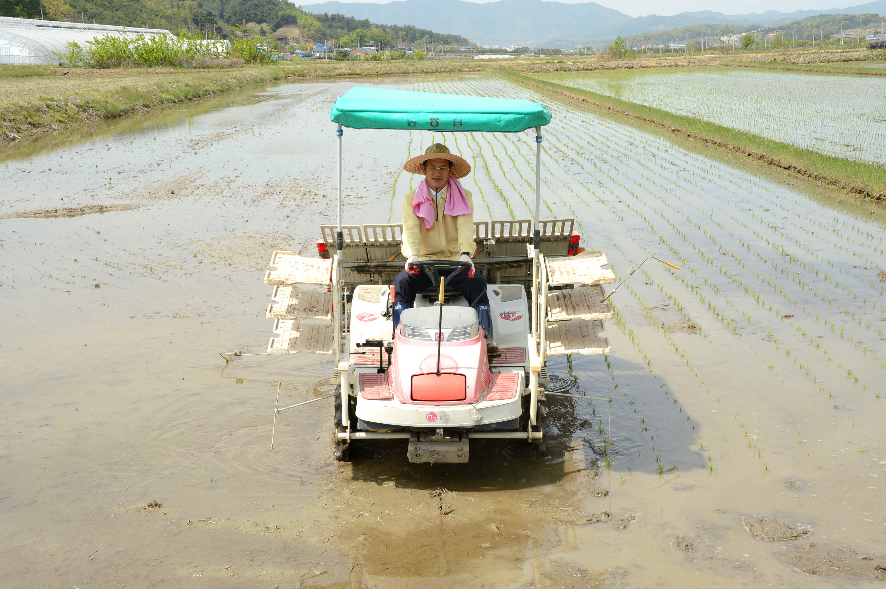 증평군은 26일 증평읍 남차리 448번지 김태복씨 논 0.66ha에서 올해 첫 모내기를 실시했다. 사진은 홍성열군수가 이앙기로 극조생종인 ‘조운벼’를 심는 모습(보도자료실 참조)