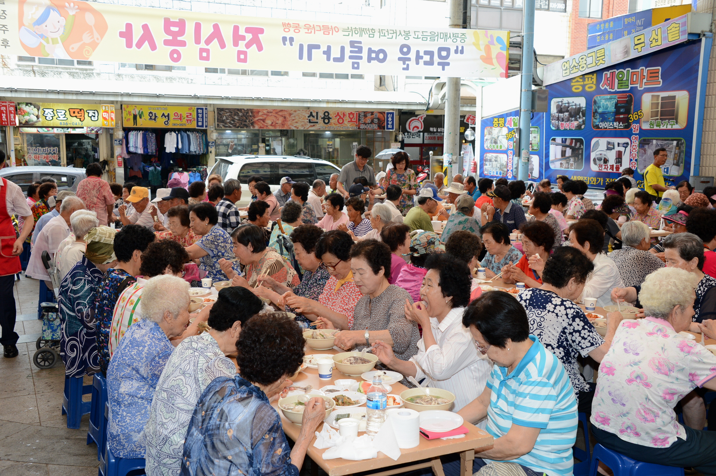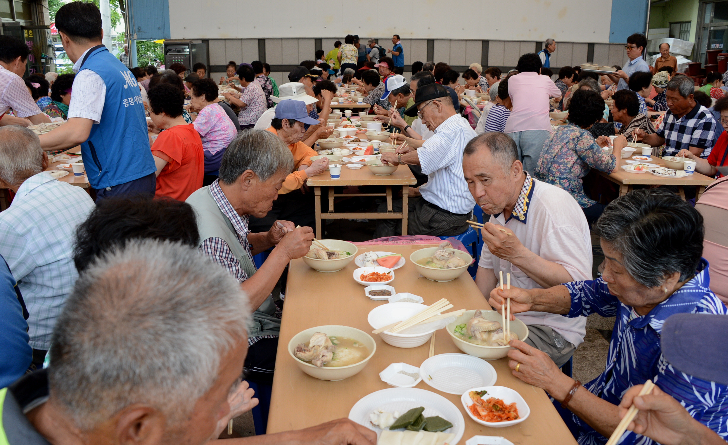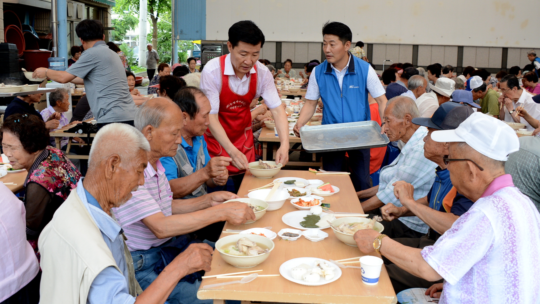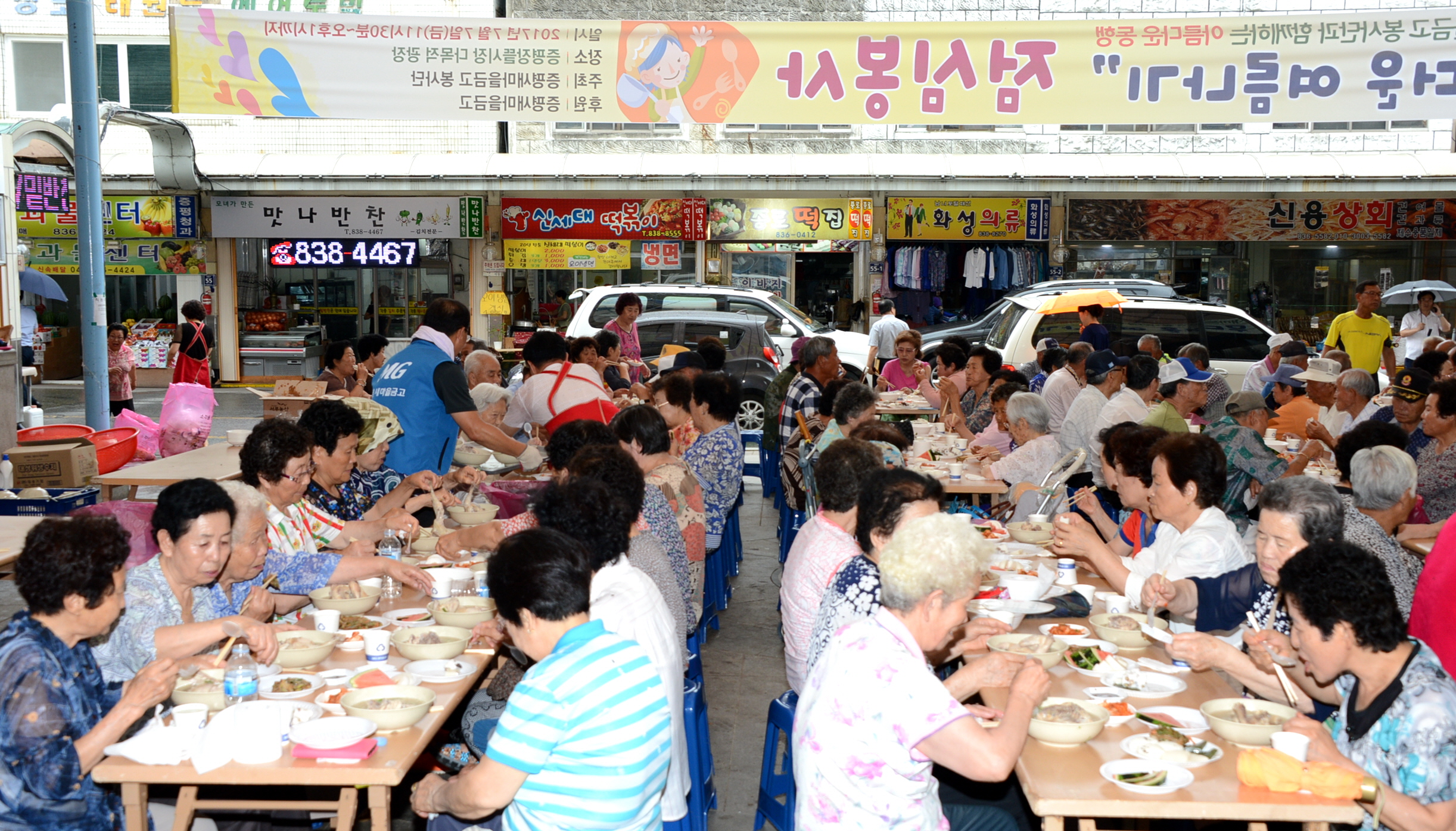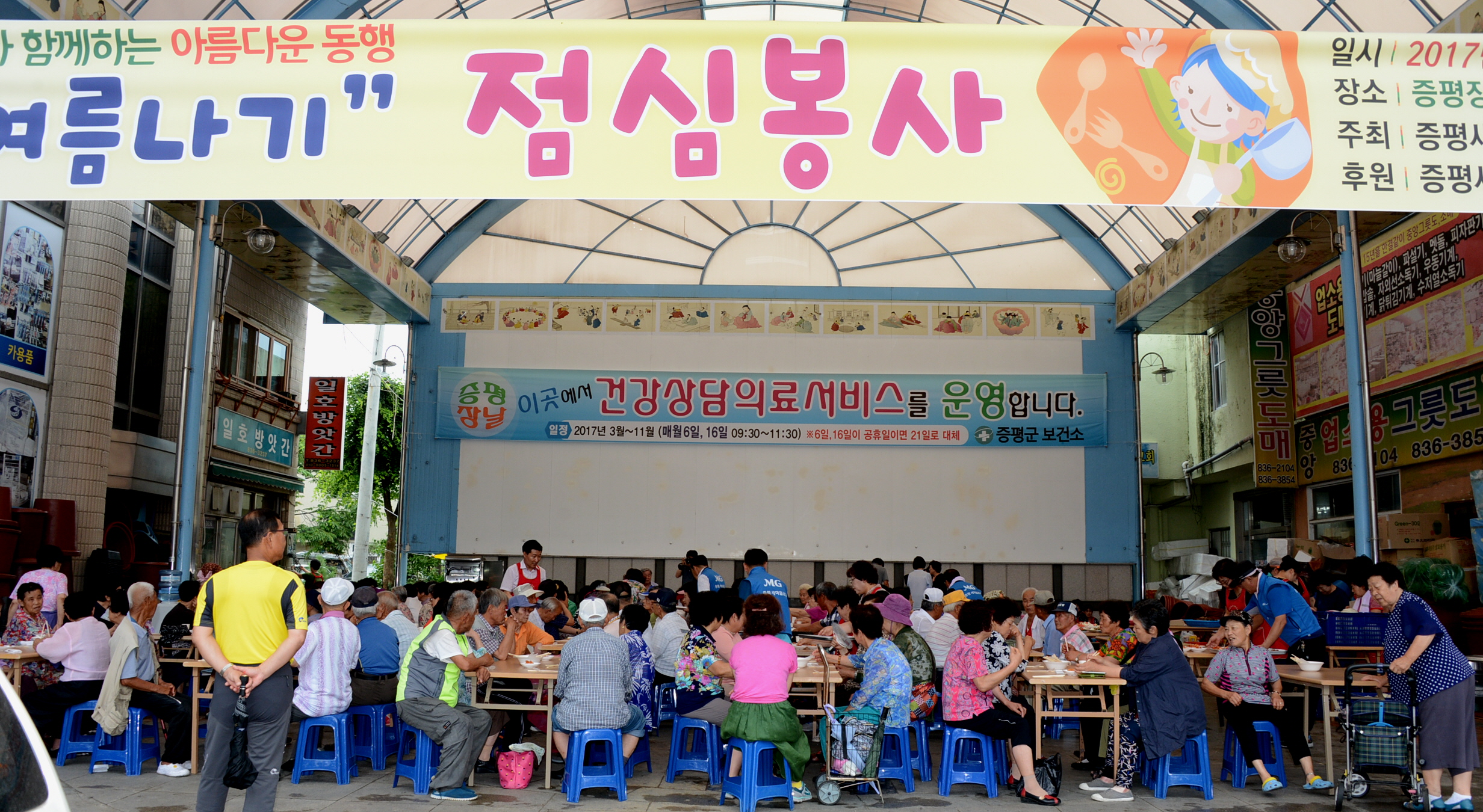 증평새마을금고 자원봉사단(이사장 엄대섭, 단장 김병목)은 7일 증평장뜰시장 다목적광장에서 ‘무더운 여름나기 점심나누기’ 행사를 진행했다.(보도자료실 참조)