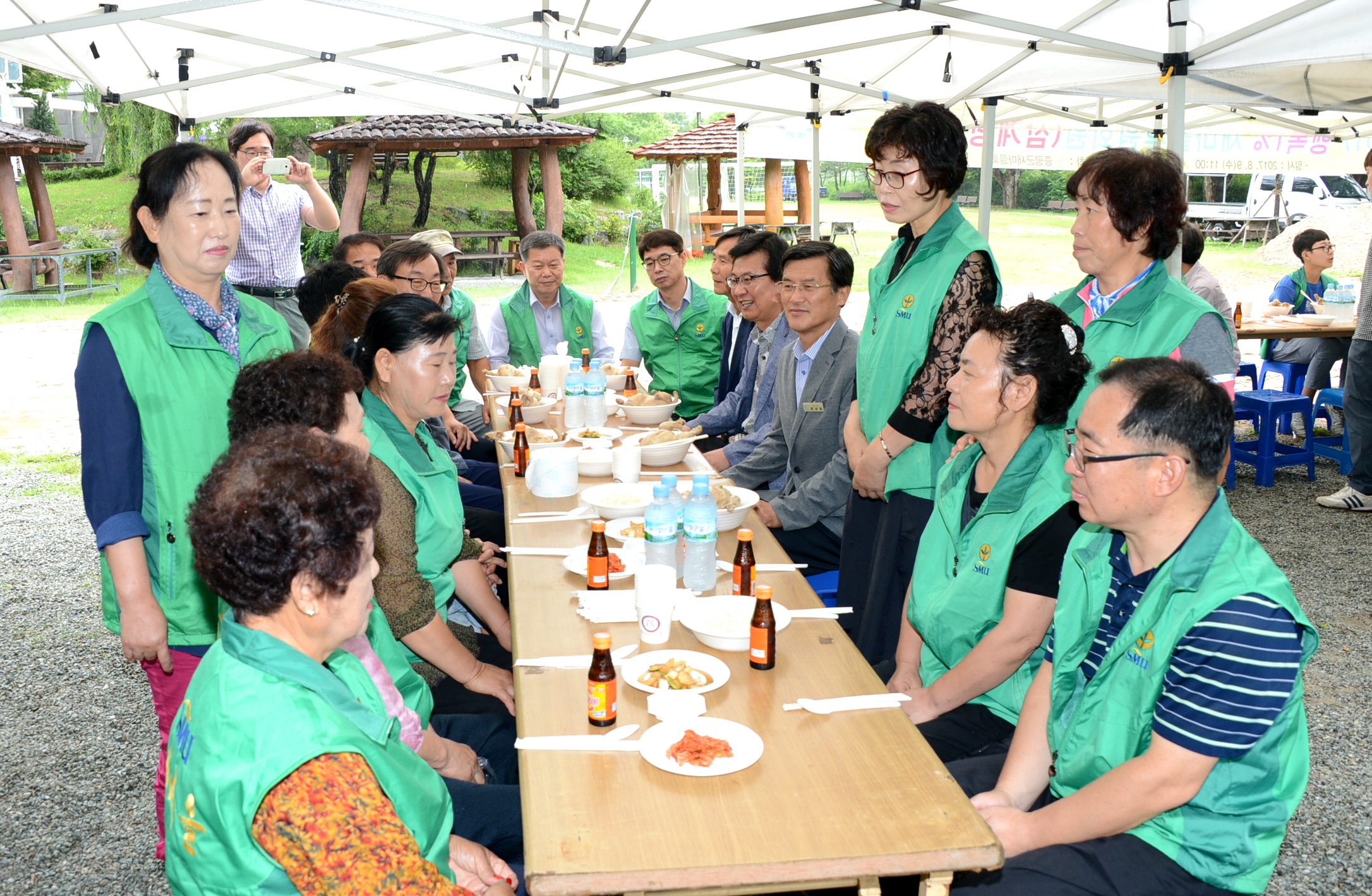 증평군새마을회(회장 정현숙)는 9일 율리휴양촌에서 새마을후원회원과 새마을지도자 100여명이 참석한 가운데 ‘2017 행복1% 새마을후원회원 삼계탕 나눔 행사’를 열었다.(보도자료실 참조)