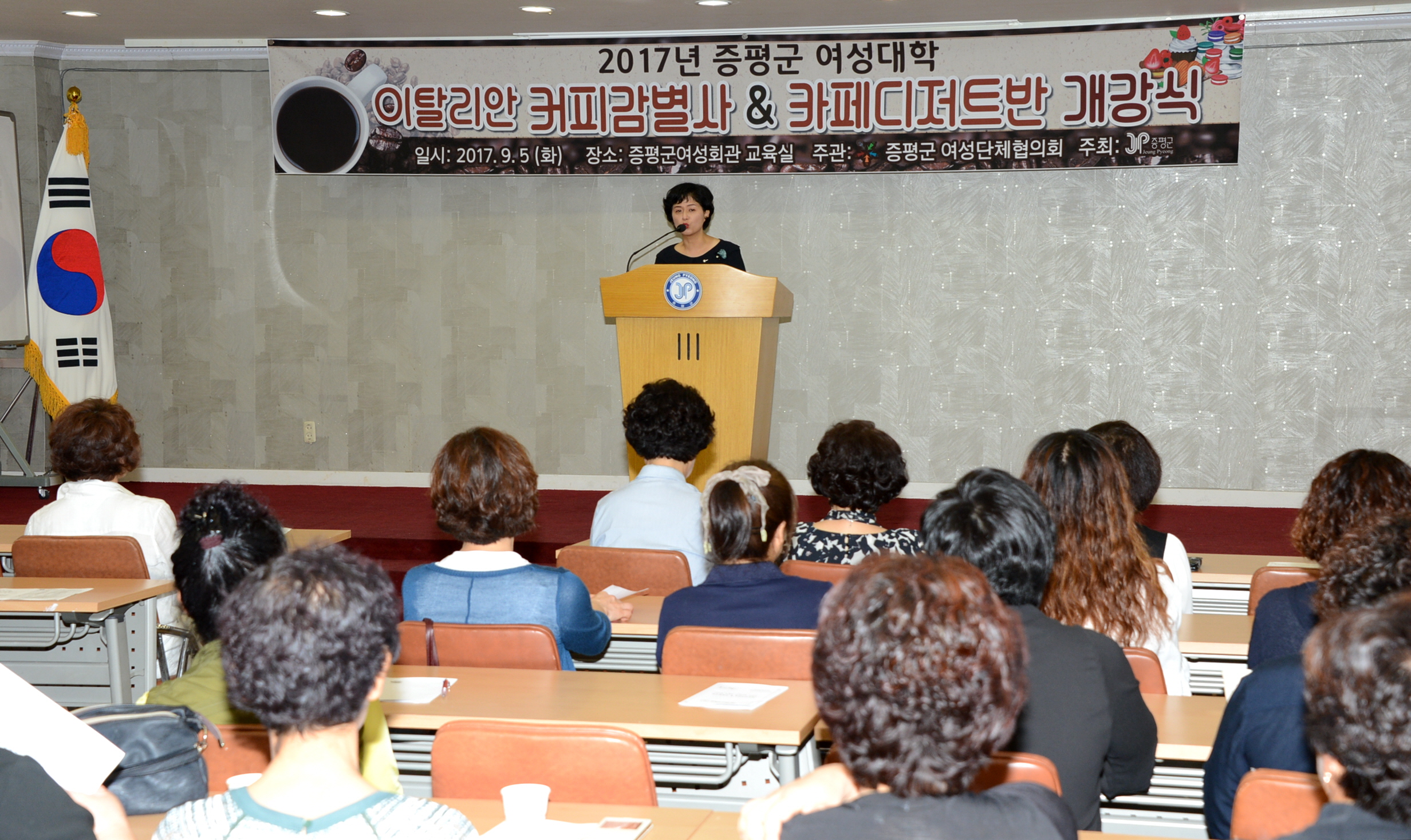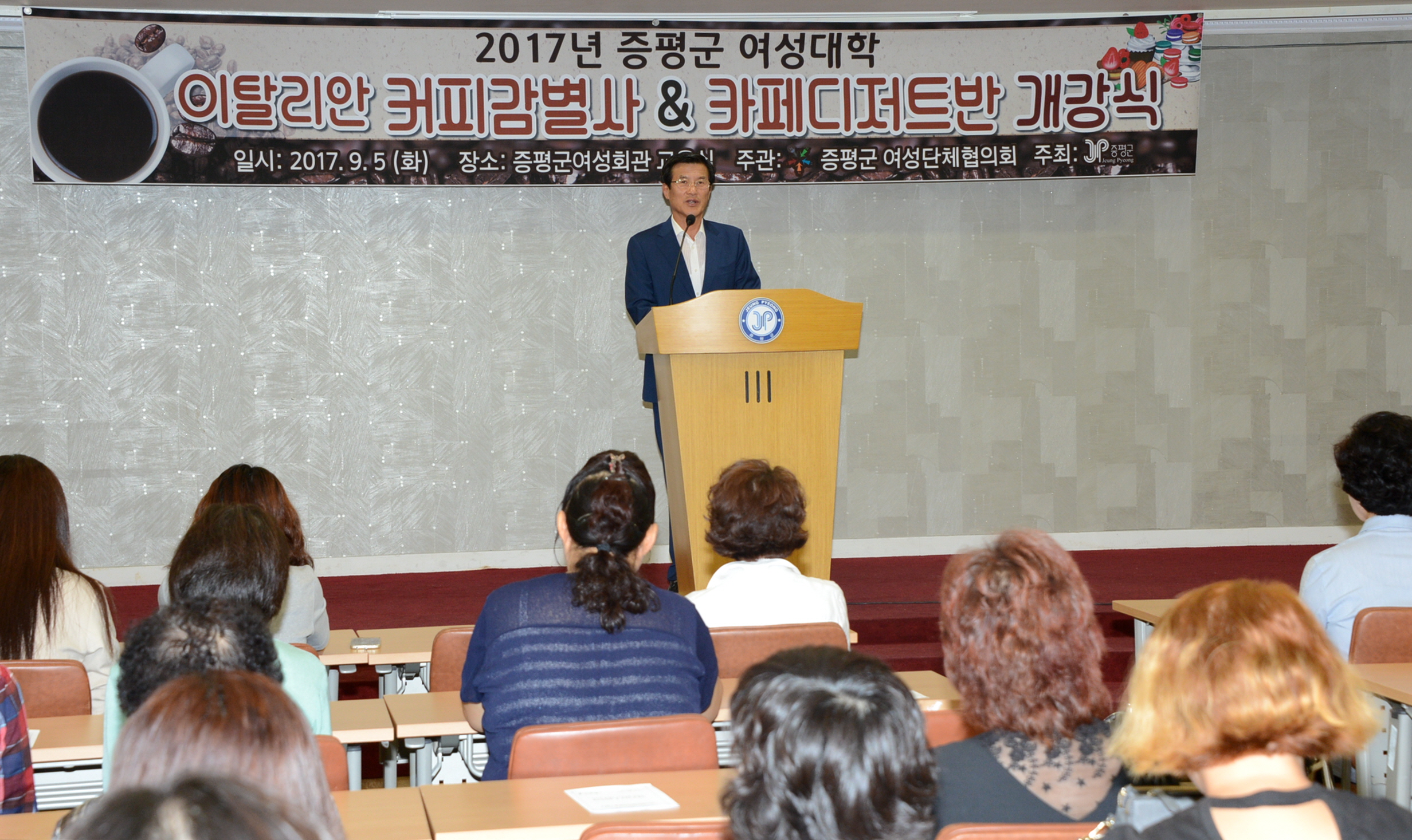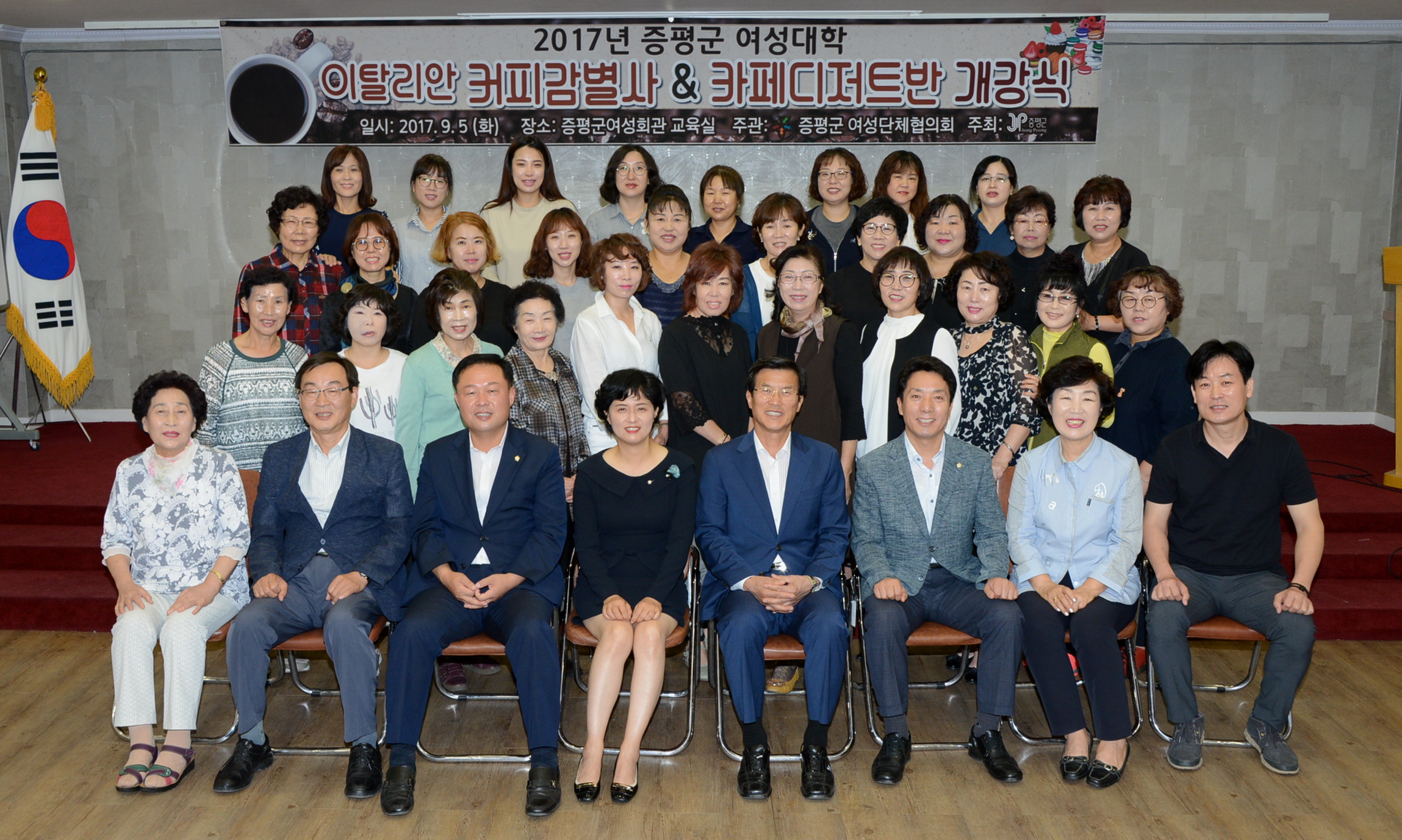 증평군여성단체협의회(회장 이상원)는 5일 여성회관에서 홍성열 증평군수, 연종석군의장를 비롯한 기관 단체장과 수강생 및 여성단체회원 등 50여명이 참석한 가운데‘ 2017년 증평군 여성대학 개강식’을 가졌다.(보도자료실 참조)