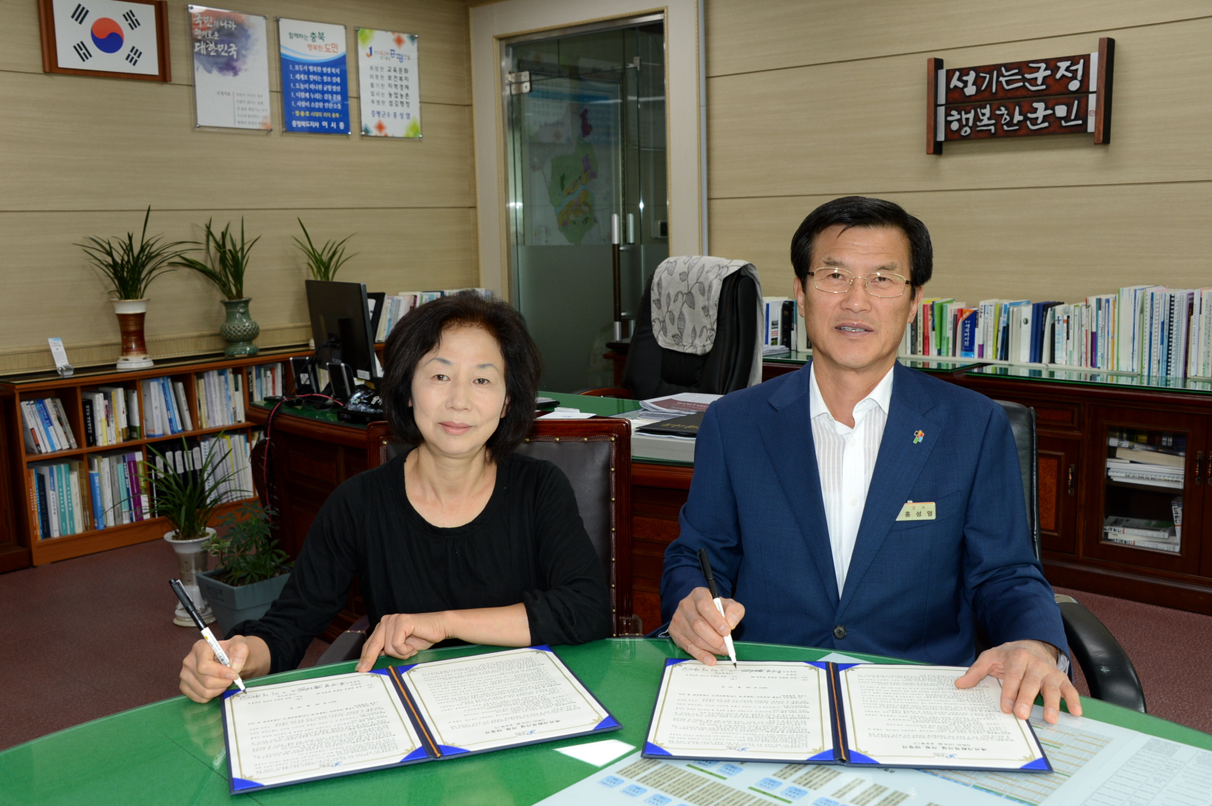 증평군은 7일 군수 집무실에서 예비사회적기업인 ㈜빛글산업대표와 재정지원사업 약정을 체결했다.(보도자료실 참조)