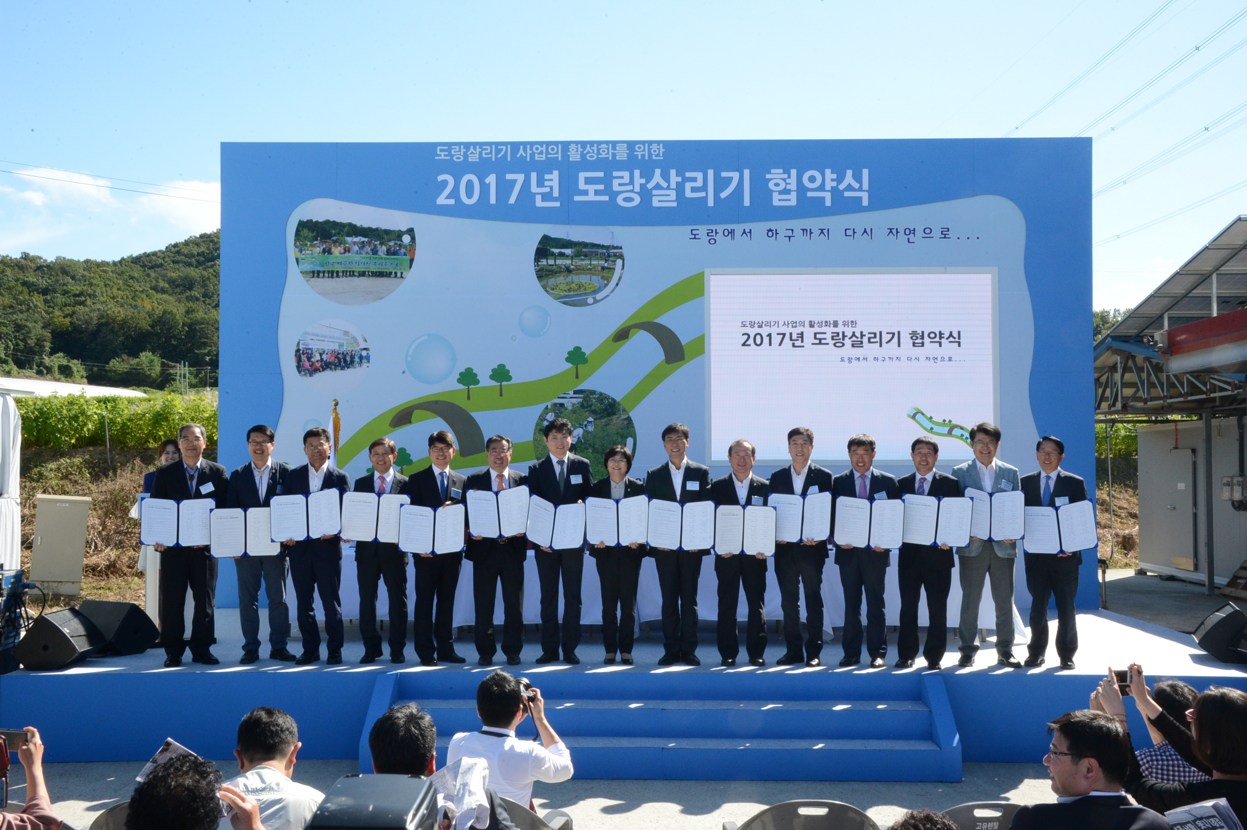 증평군이 20일 아산시 선장면 일대마을 마을기업에서‘도랑살리기사업’의 성공적인 추진을 위한 협약을 체결했다.(보도자료실 참조)