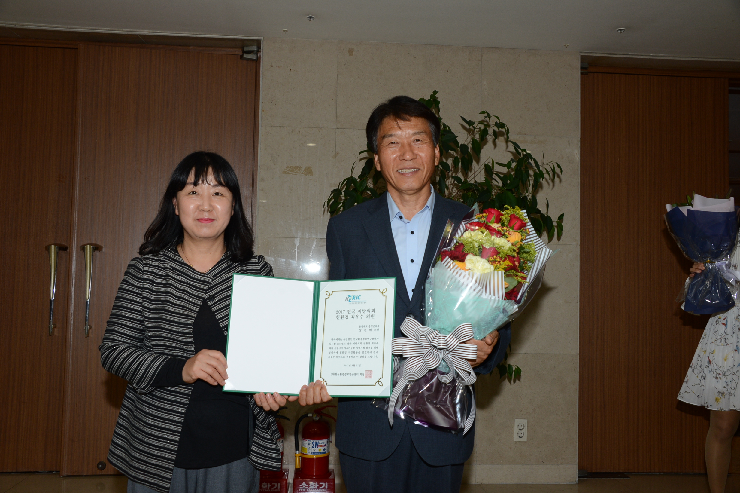 증평군의회 장천배 의원이 27일 서울신용보증재단 대강당에서 ‘2017 전국 지방의회 친환경 최우수 의원’으로 선정됐다.(보도자료실 참조)