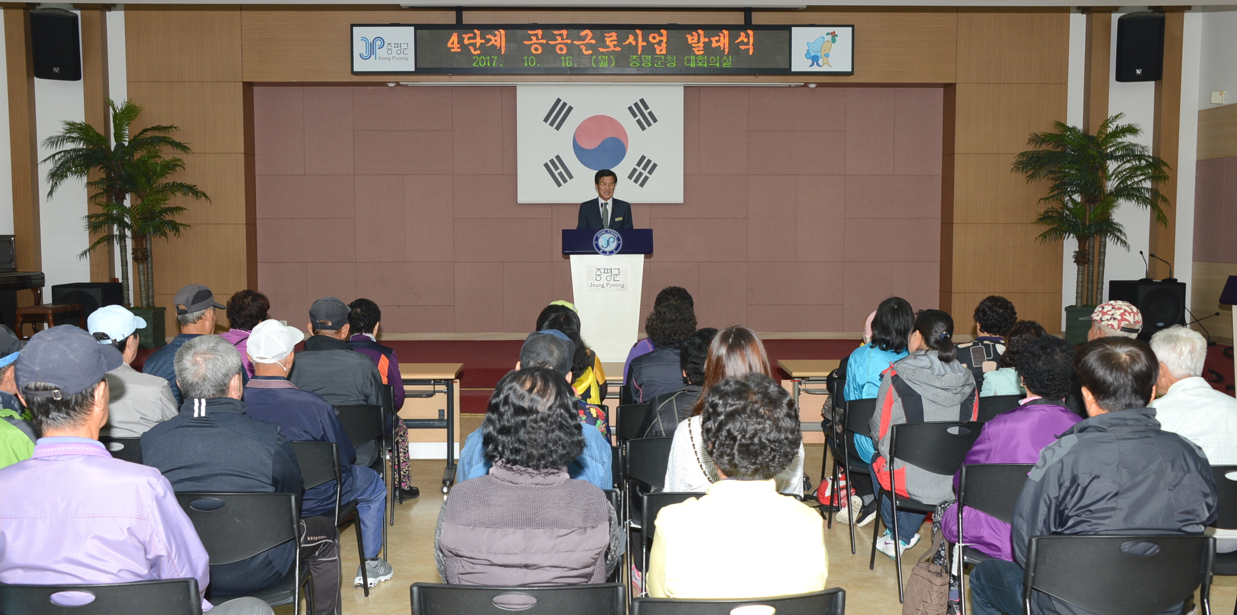 증평군은 16일 군청 대회의실에서‘2017년 제4단계 공공근로사업’발대식을 열었다.(보도자료실 참조)
