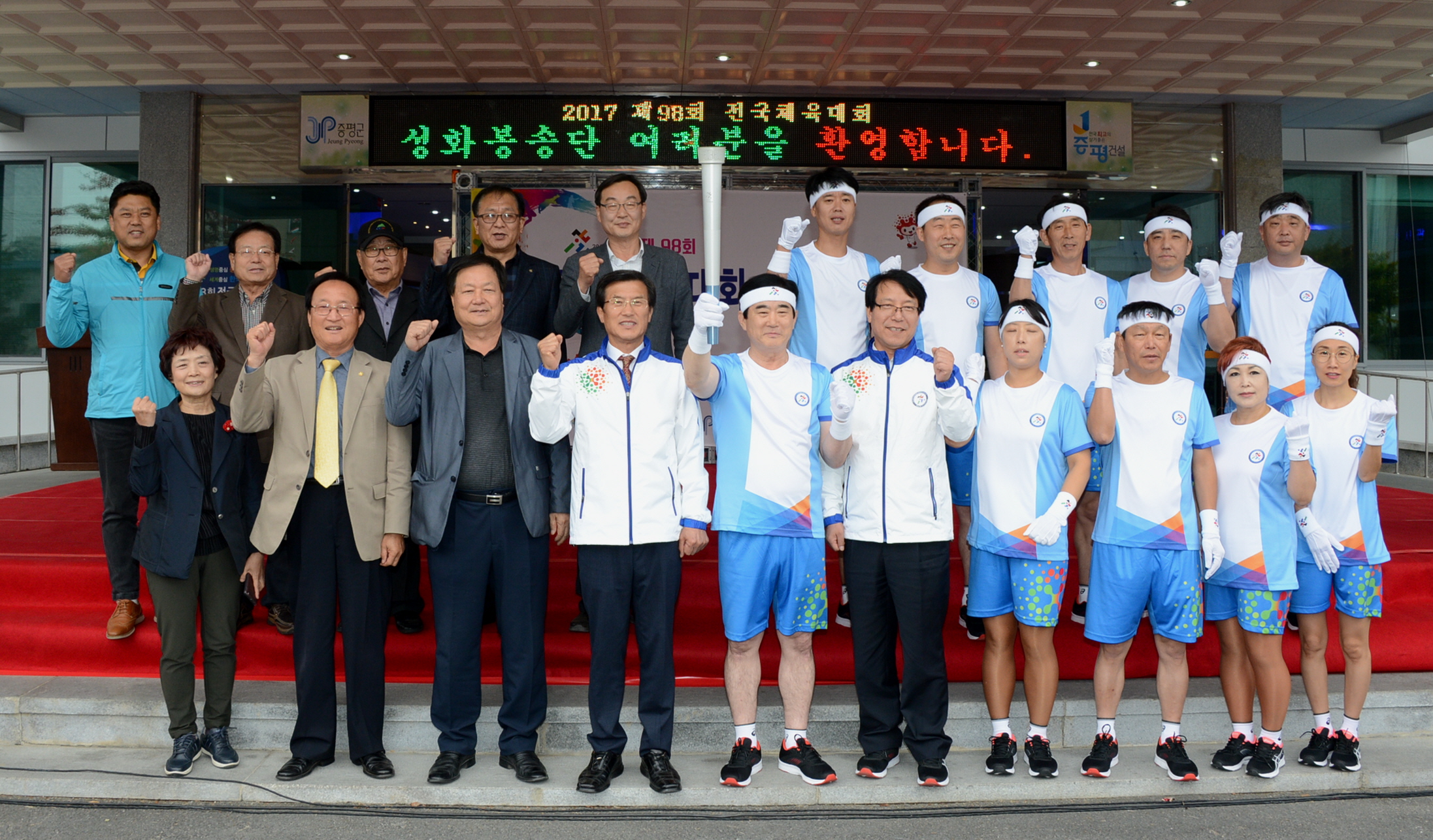 증평군은 18일 오후 2시 군청 광장에서 제98회 전국체육대회를 홍보를 위한 성화 봉송 환영행사를 개최했다.(보도자료실 참조)