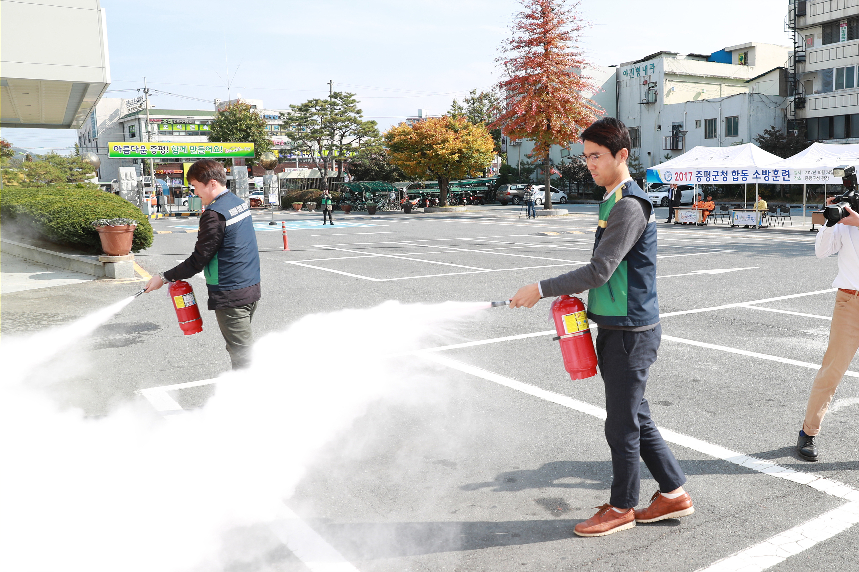 증평군이 24일 군청광장에서 소방관계 기관과 합동소방훈련을 실시했다.(보도자료실 참조)