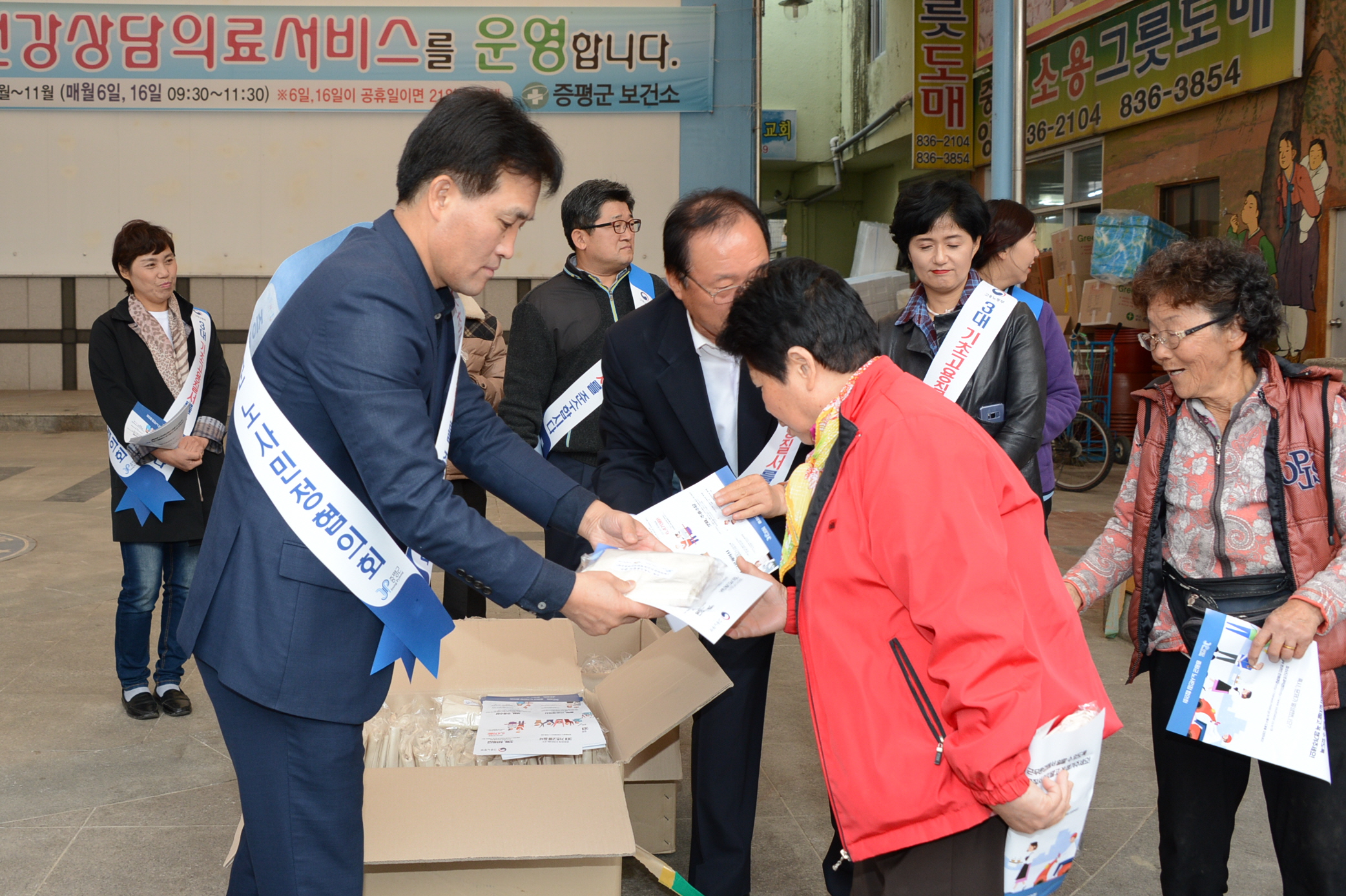 증평군 노사민정협의회(위원장 홍성열 증평군수)는 1일 증평읍 장뜰시장에서 노사민정협의회 위원 및 실무위원들과 함께 3대 기초고용질서 준수 캠페인을 실시했다.(보도자료실 참조)