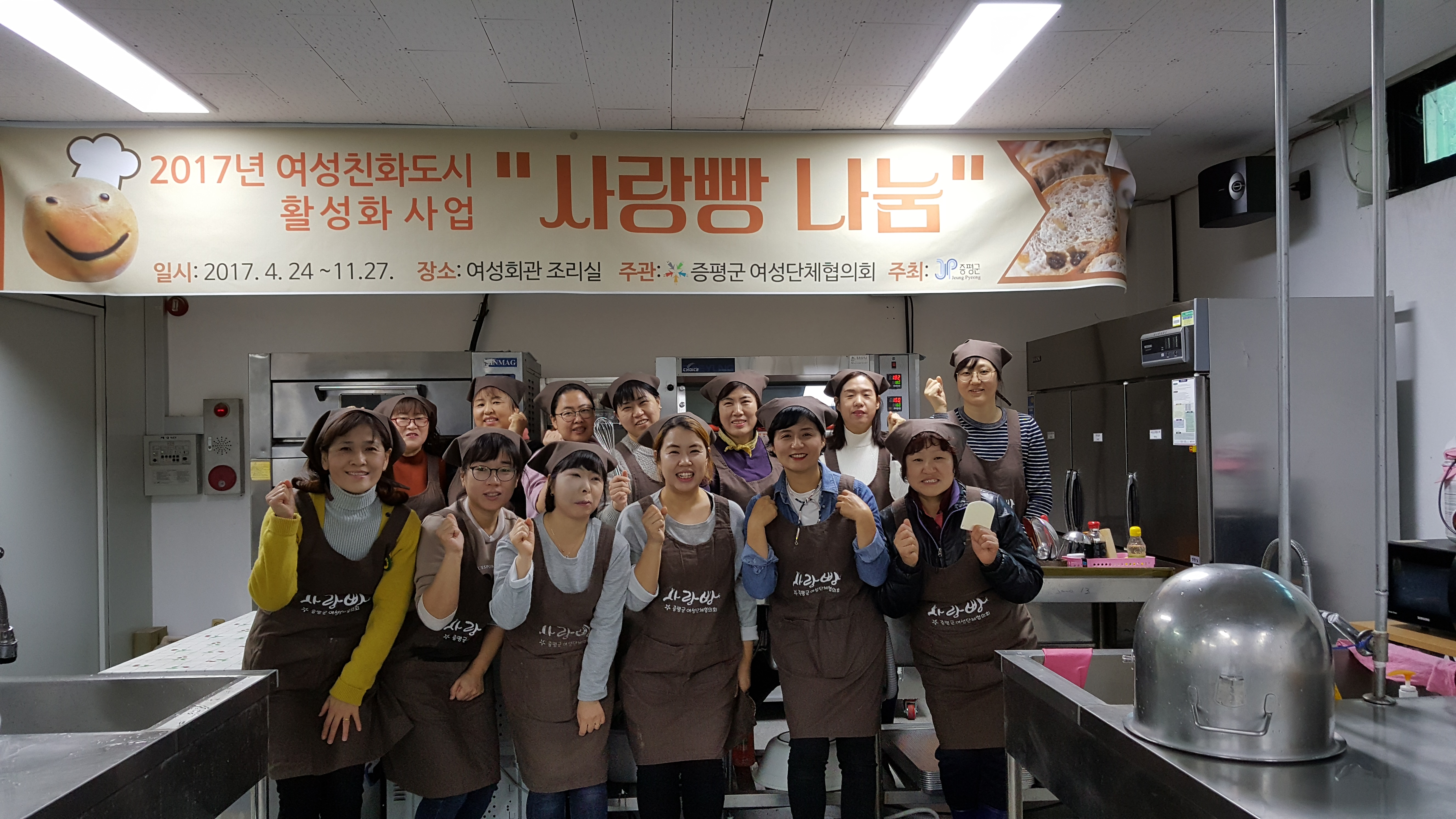 증평군여성단체협의회(회장 이상원)가 여성친화도시 활성화 사업의 일환으로 지난 4월부터 여성회관에서 실시해온‘2017 사랑빵 나눔 봉사 행사’를 27일 행사를 끝으로 마침표를 찍었다.(보도자료실 참조)