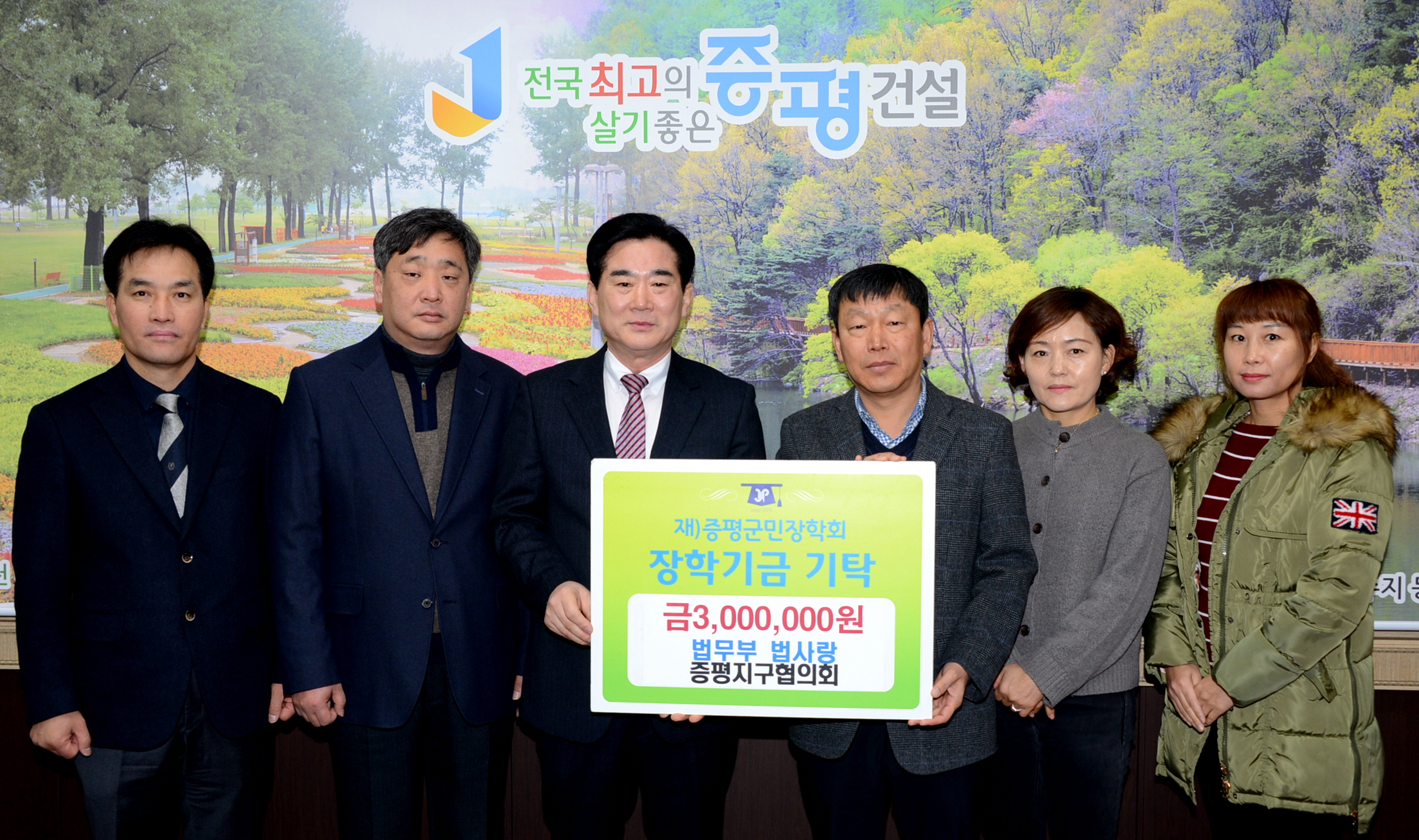 법무부 법사랑 증평지구협의회(회장 연광영)는 증평 지역 인재양성을 위해 써달라며 (재)증평군민장학회(이사장 홍성열 증평군수)에 장학기금 300만원을 기탁했다.(보도자료실 참조)