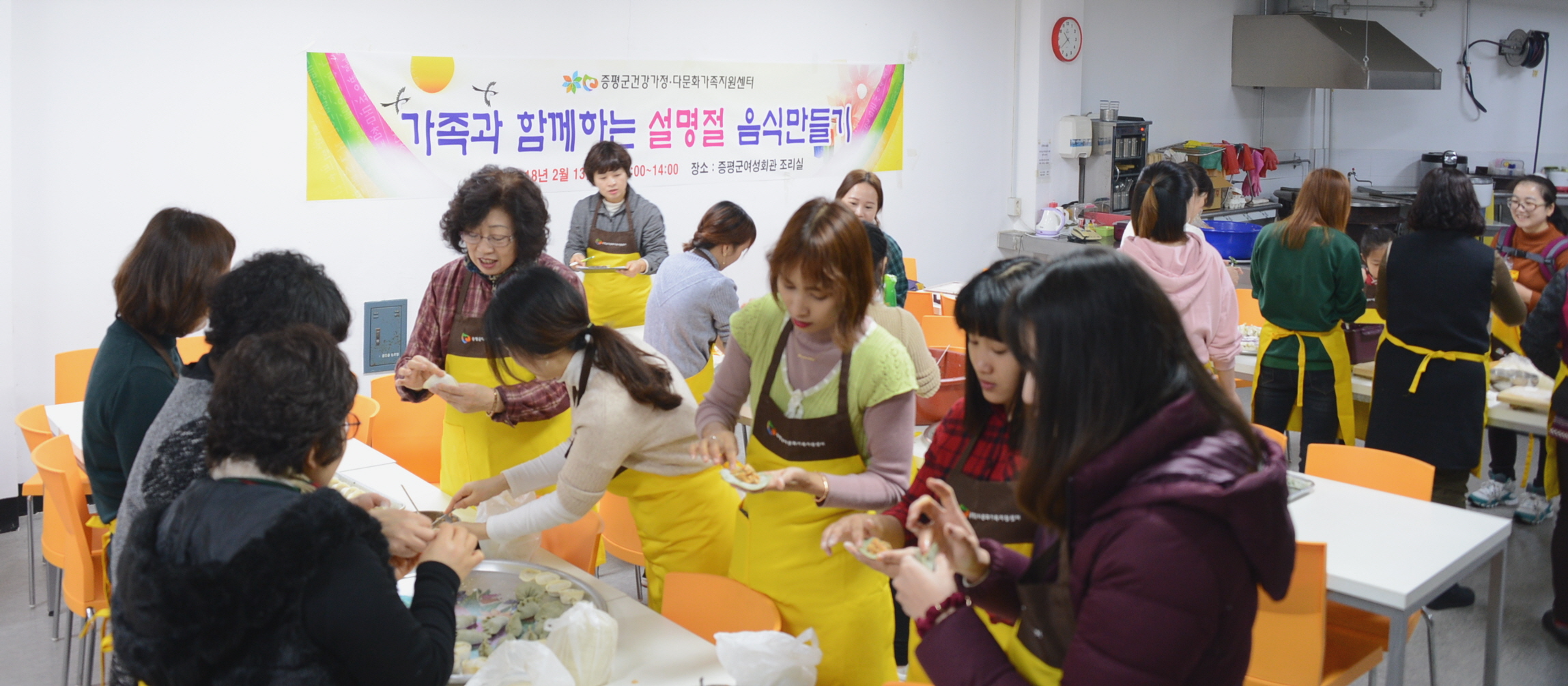증평군 건강가정·다문화가족지원센터(센터장 연제일)는 13일 증평읍 장동 여성회관 조리실에서 다문화가정 및 일반가정 20명을 대상으로‘가족과 함께하는 설 명절음식 만두 만들기’프로그램을 실시했다.(보도자료실 참조)