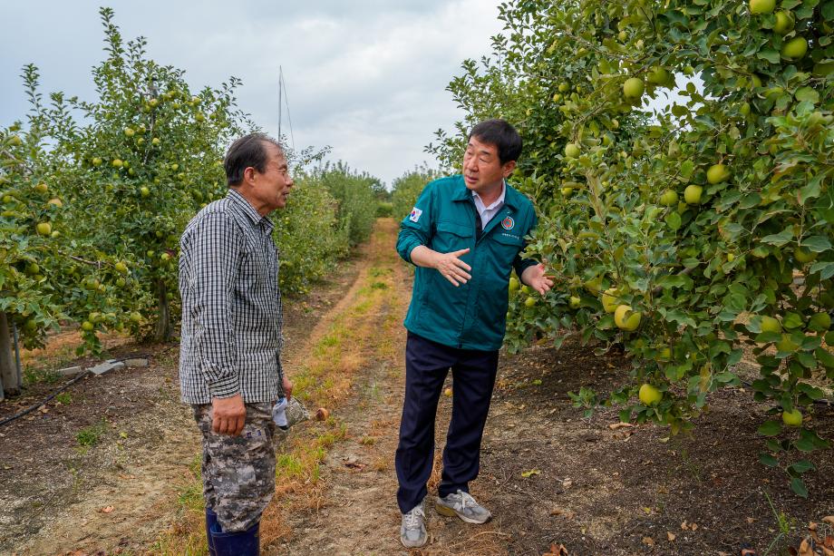 이재영 증평군수, 무더위 이겨낸 사과 재배 농가 격려