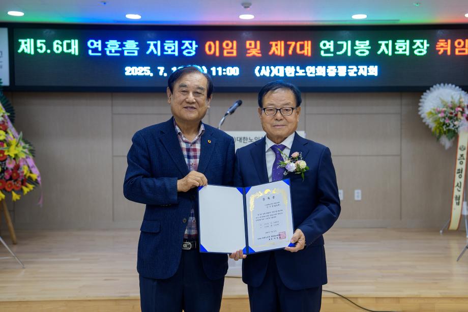 대한노인회 증평군지회, 제6‧7대 지회장 이‧취임식 개최... “어르신 복지 새롭게 잇는다”