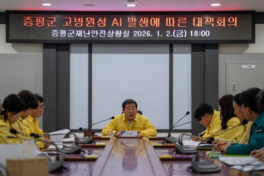 충북 증평군이 지역 내 농가에서 AI H5형 항원이 검출돼 긴급회의를 열고 방역 대응 강화에 나섰다.