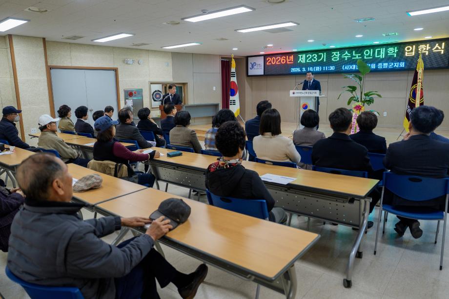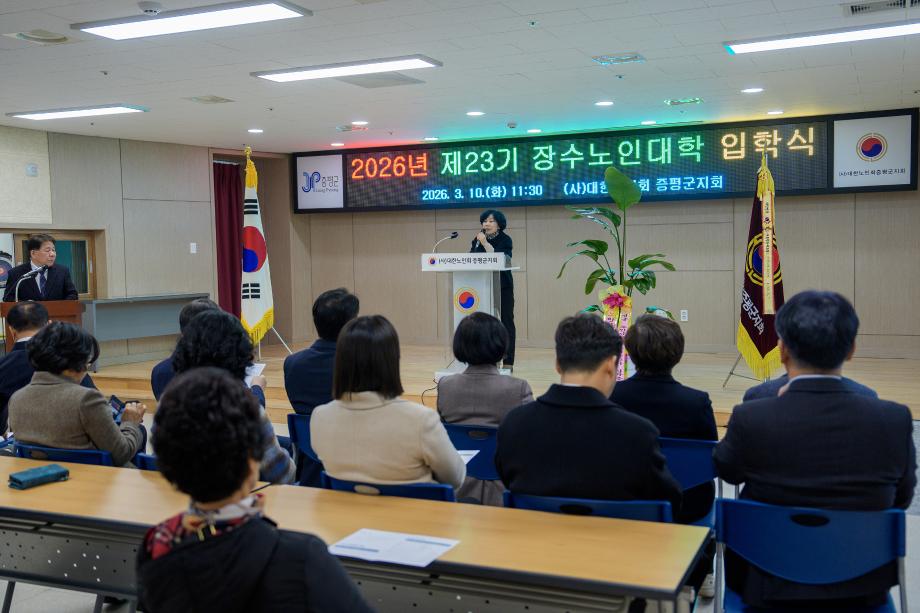 충북 증평군은 10일 노인지회 회의실에서 제23기 장수노인대학(학장 이창숙) 입학식을 개최했다고 밝혔다.