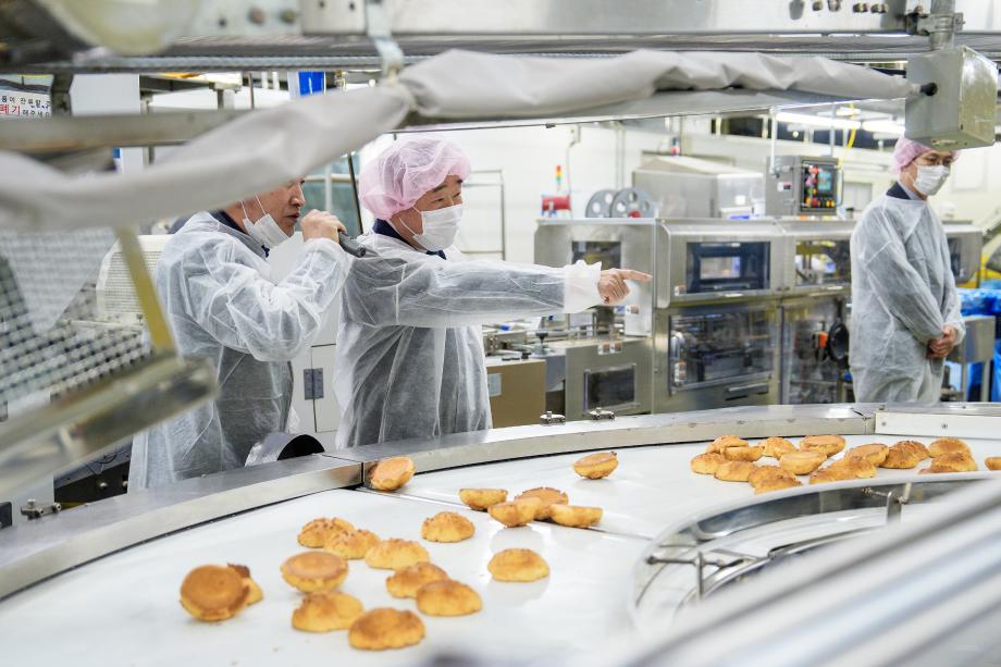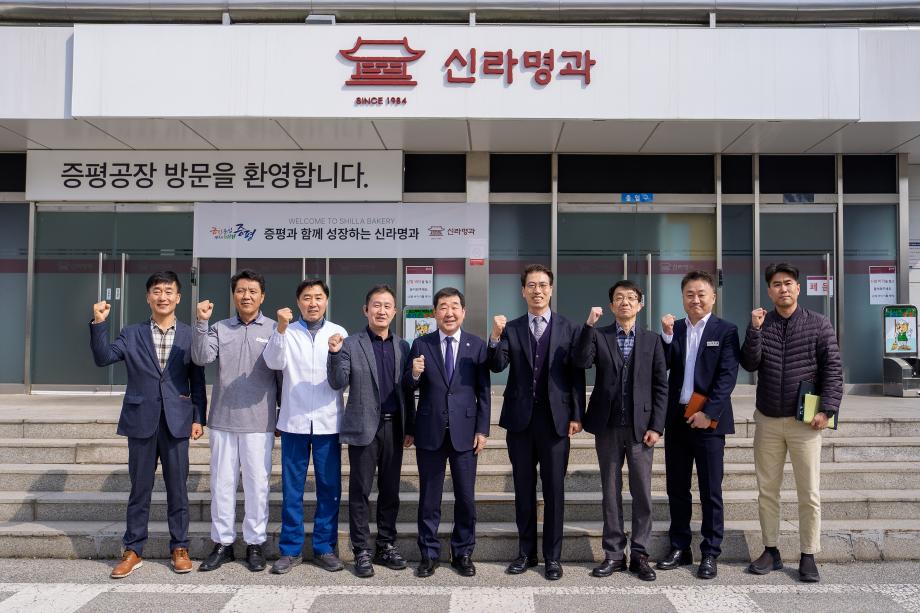 충북 증평군은 12일 이재영 군수가 도안테크노밸리에 위치한 ㈜신라명과(대표 박창훈, 홍수현) 증평사업장을 방문했다고 밝혔다.