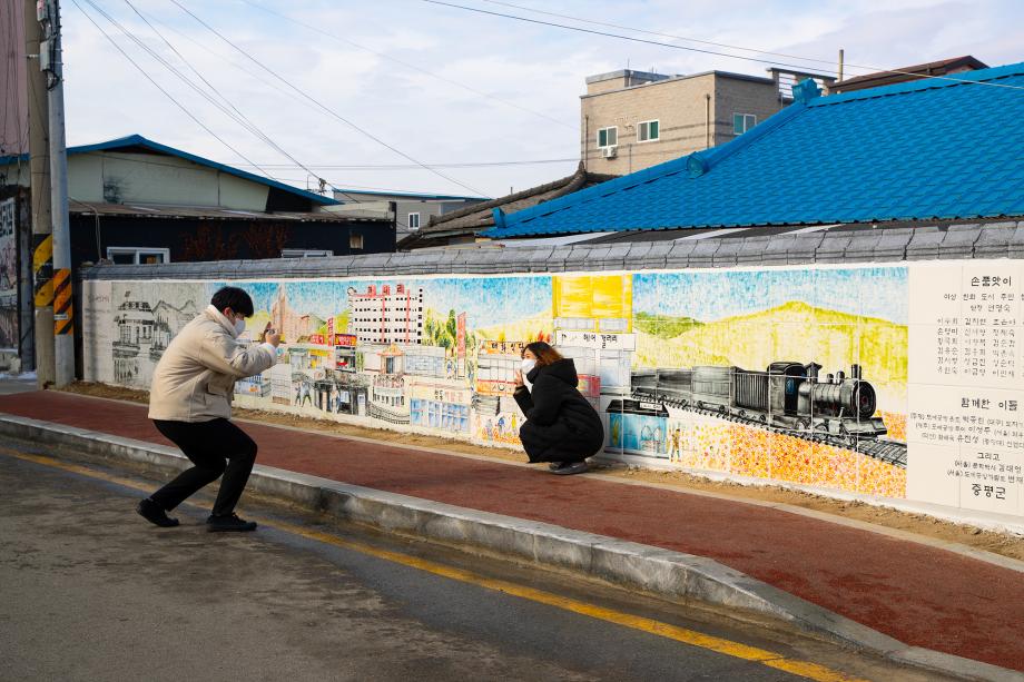 증평군 여성친화도시 주민참여단은 증평읍 삼보로7길 일원에 창동리 지역의 옛 추억을 담은 벽화인 ‘창동 갤러리’를 조성했다.