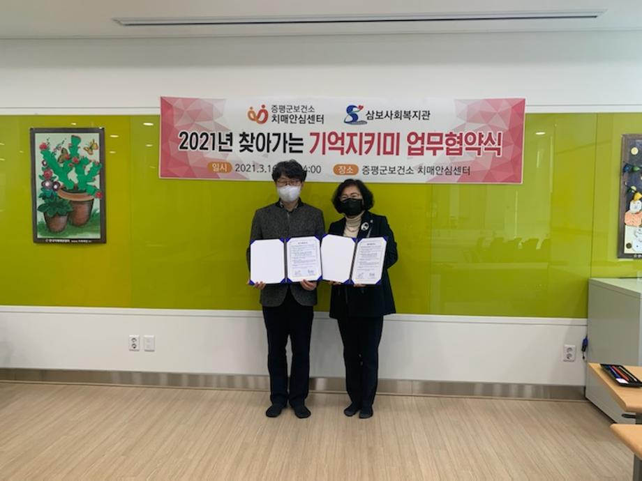 증평군보건소 치매안심센터(소장 윤서영)가 삼보사회복지관(관장 박경화)과 협약을 맺고‘2021년 찾아가는 기억지키미 사업’을 본격적 운영한다고 지난 16일 전했다.