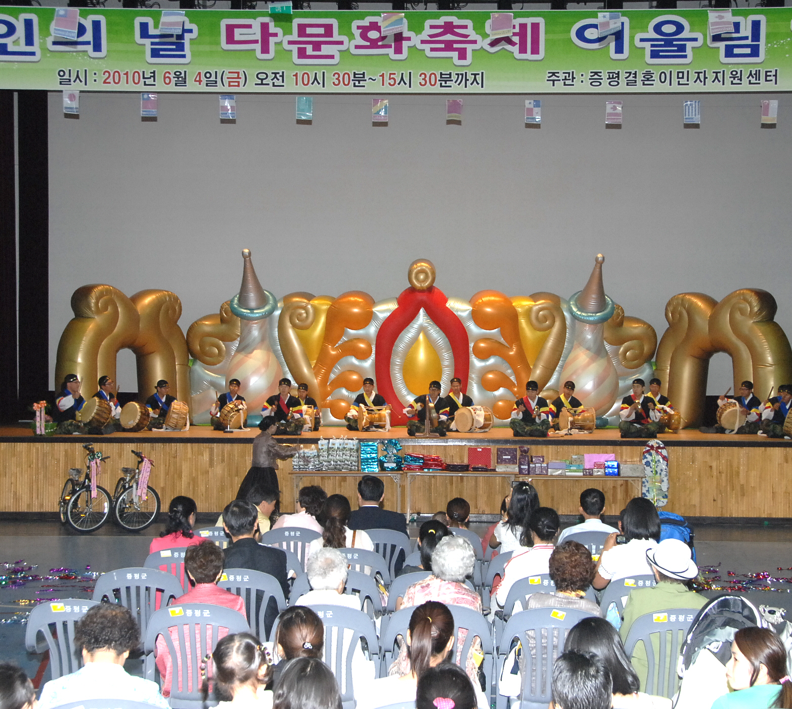 증평지역에 거주하는 외국인주민들의 사회 정착을 돕고 다문화 가정에 대한 인식 전환의 계기를 마련하기 위한 2010년도 다문화 축제가 4일 증평종합스포츠센터에서 외국인주민 및 가족, 주민 등 200여명이 참석한 가운데 열렸다.[보도자료실 참조]