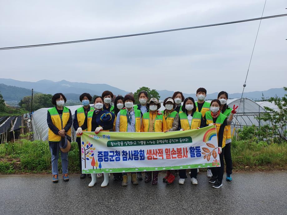 증평군청 봉사 동아리 참사랑회 회원 15명은 15일도안면 도당리 470번지 일원에서 옥수수밭 흙덮기 생산적 일손봉사를 실시했다.