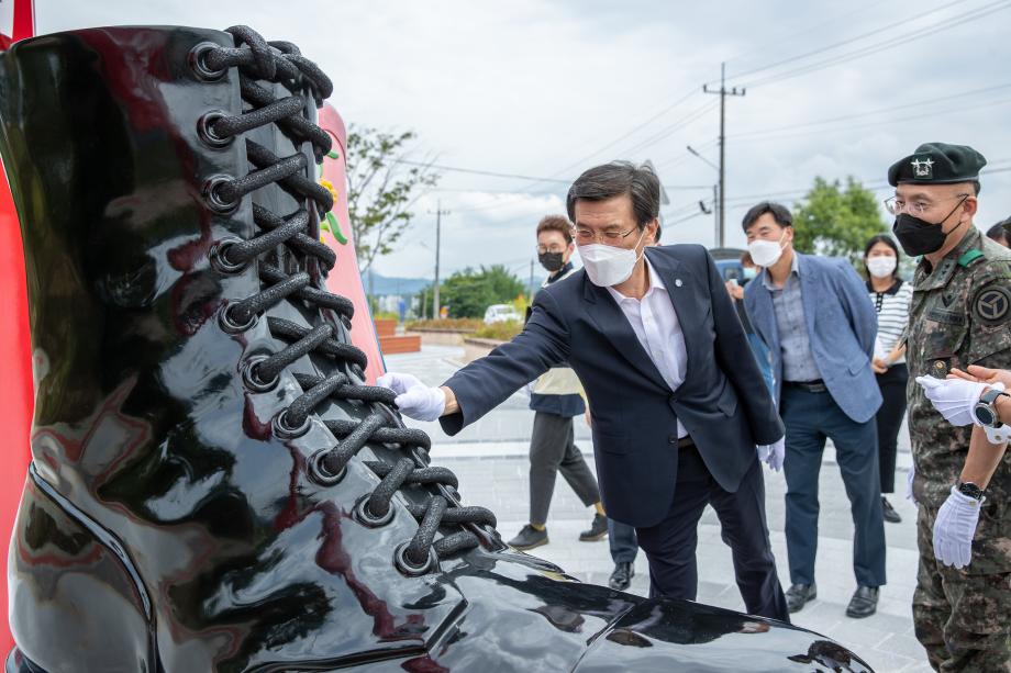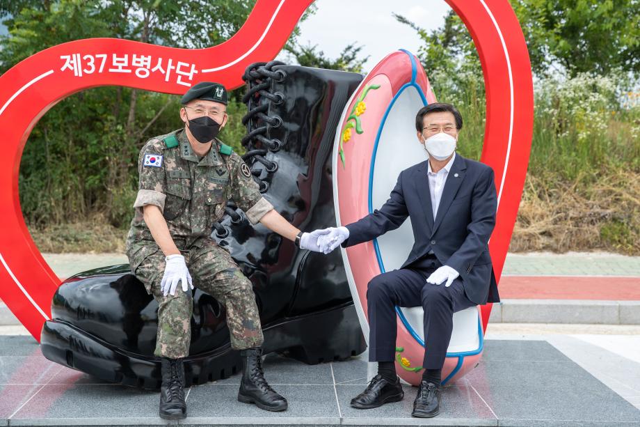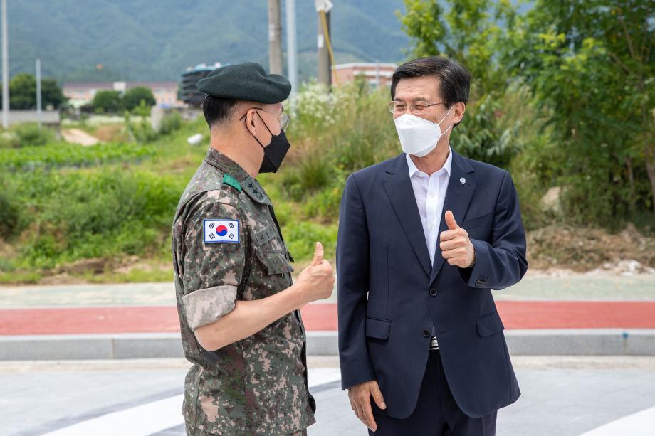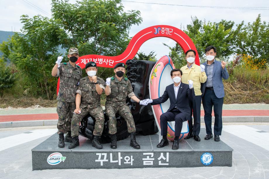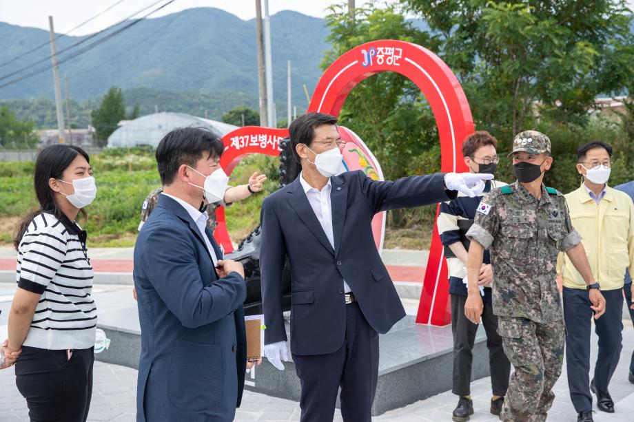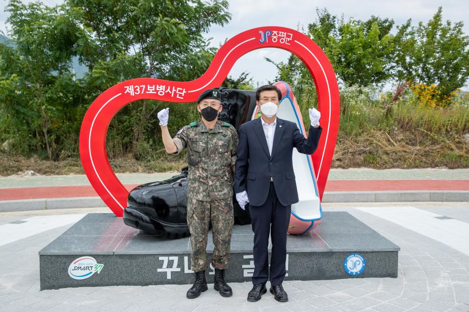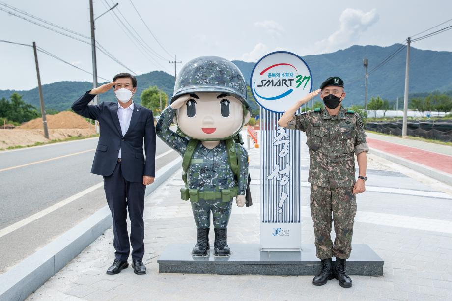 증평군은 22일 홍성열 증평군수와 고창준 37사단장이 참석한 가운데 병영이음길 조성사업 준공을 기념하는 제막식을 열었다고 밝혔다.
