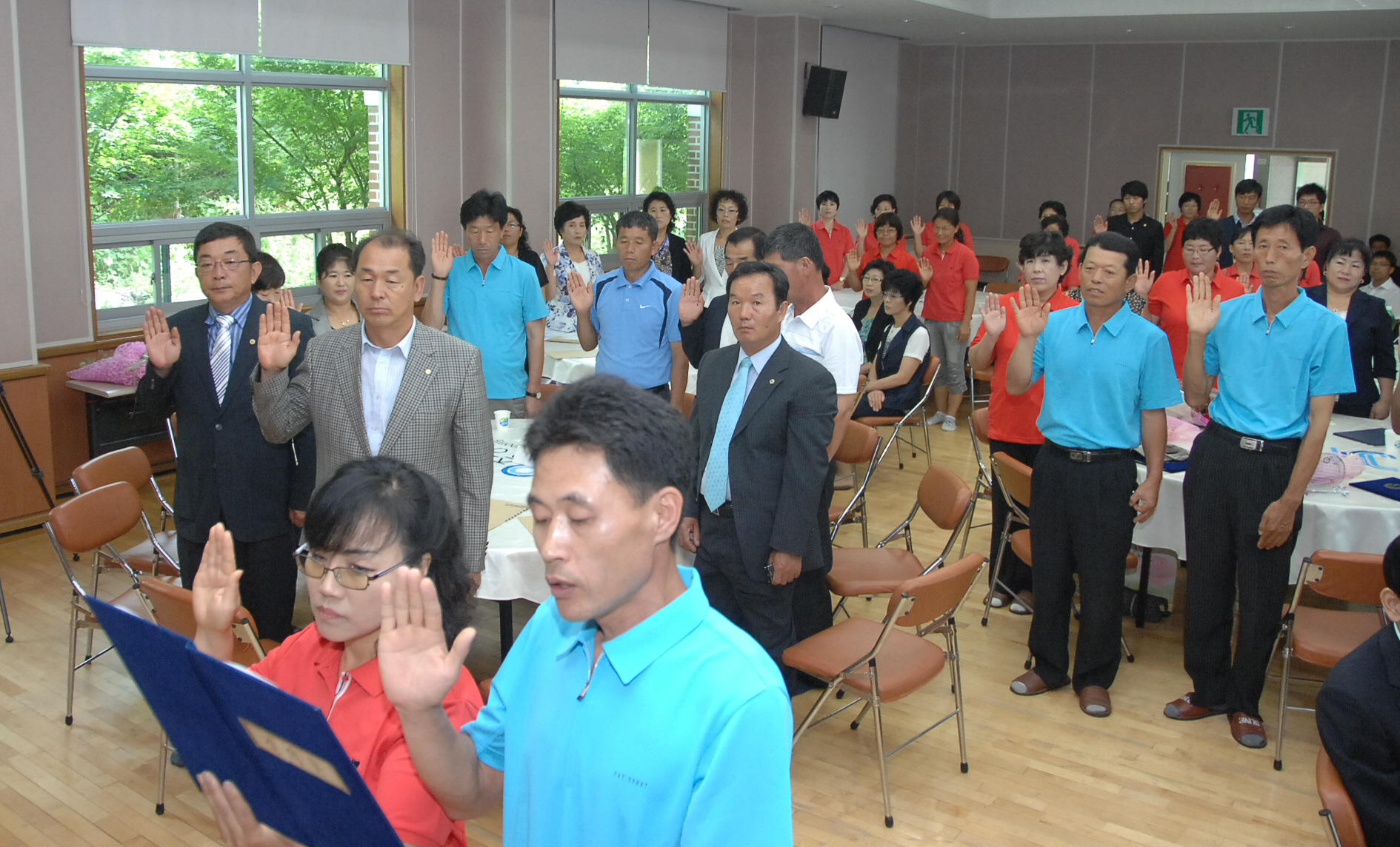 증평군 농업경영인(회장.이채희)과 여성농업인회(회장.최경임) 합동수련회가 10일 오전 11시30분 증평읍 율리 휴양촌에서 윤기복 증평부군수, 김재룡 군의장 등을 비롯한 지역 내 기관단체장들과 남·여 농업인 회원 등 약 90여명이 참석한 가운데 열렸다.[보도자료실 참조]