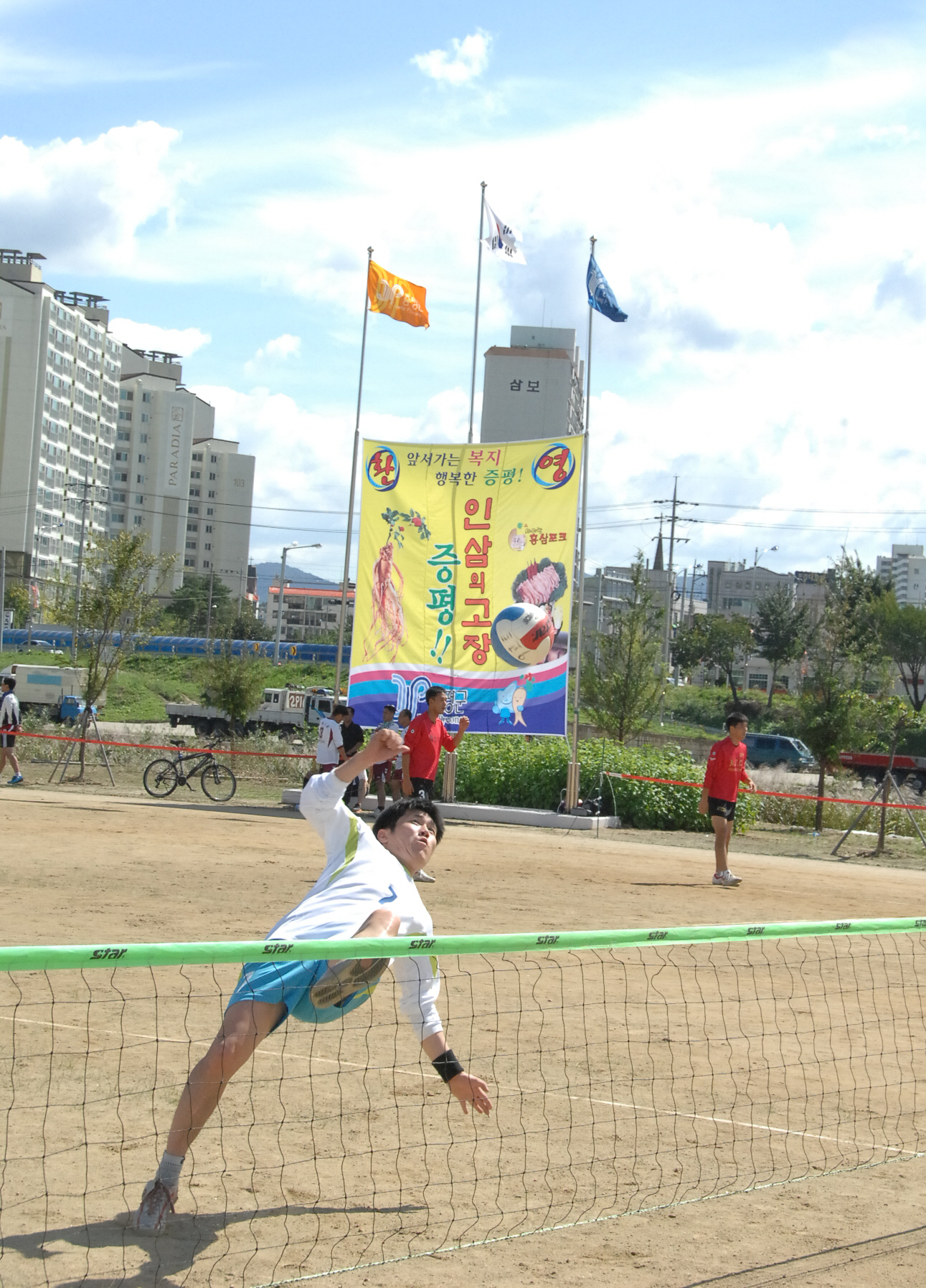 제1회 증평인삼배족구대축제가 25일과 26일 증평읍 보강천체육공원에서 전국에서 110개 팀 1,000여 명의 선수가 참가한 가운데, 일반부·장년부·청소년부로 나눠 경기가 펼쳐졌다.[9월20일 보도자료 참조]