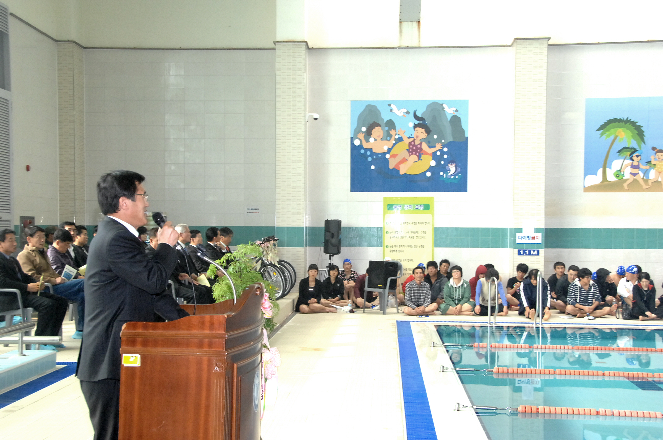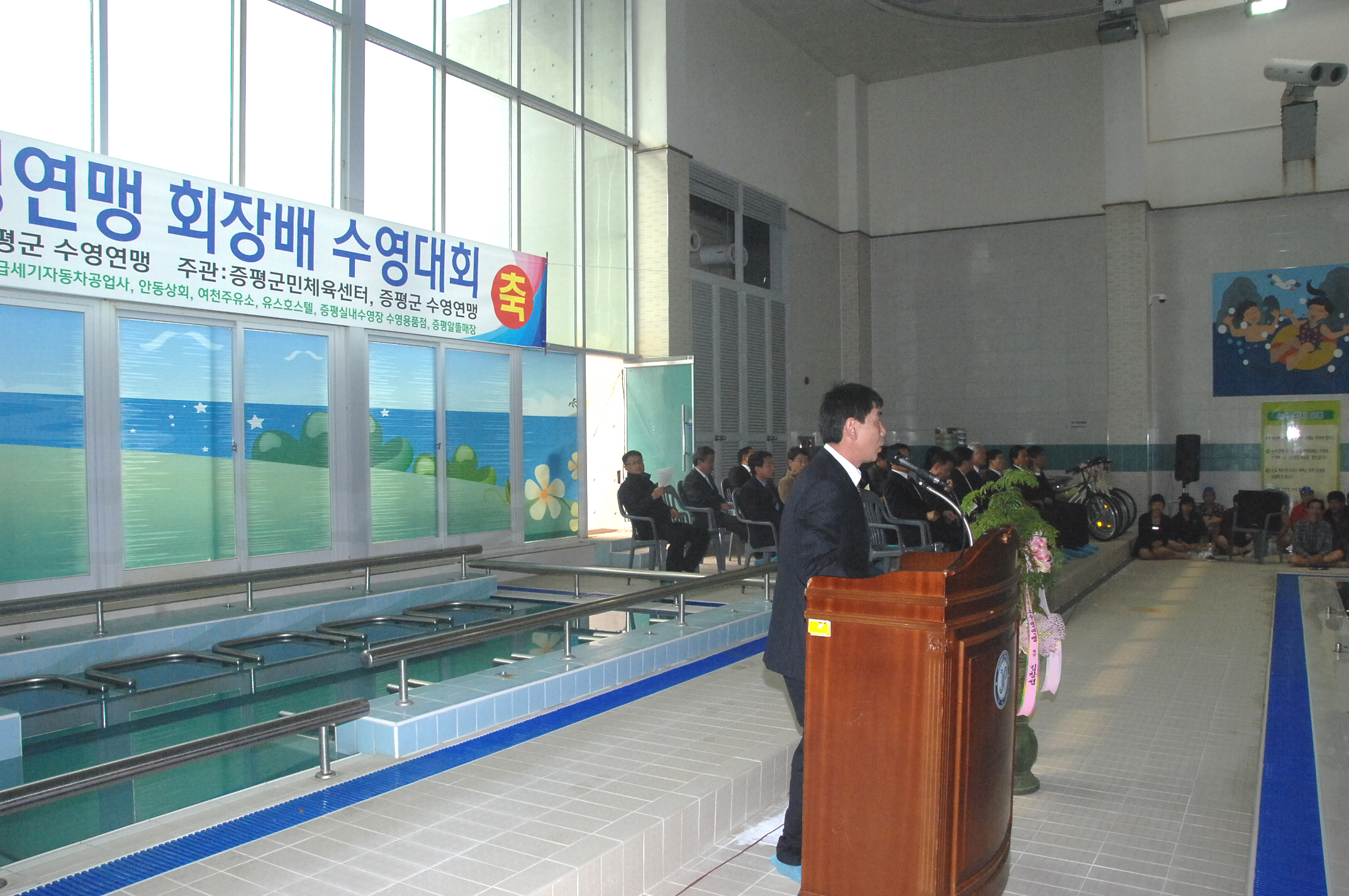 증평군 수영연맹(회장 김영태)이 주관한 제1회 증평군수영연맹회장배 수영대회가 지난 6일 증평국민체육센터 수영장에서 150여명의 수영 동호인들이 참가한 가운데 성황리에 개최됐다.[보도자료실 참조]