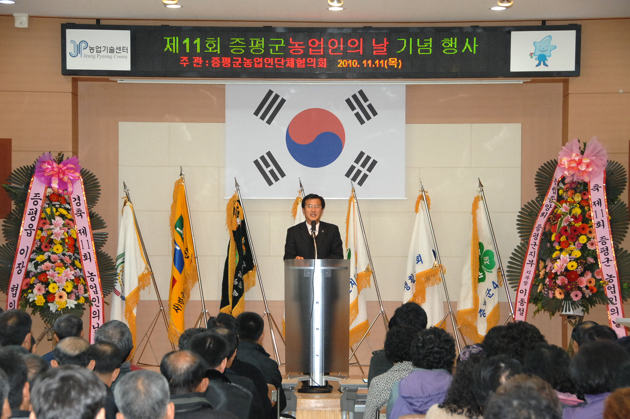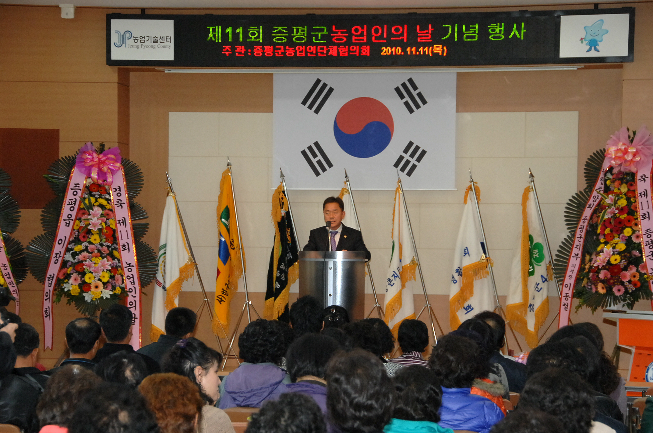 증평군 농업인단체협의회(회장 안성호)는 11일 오전 11시 농업기술센터 농업인문화관에서 250여명의 농업인 및 관련단체회원이 참여한 가운데 제11회 증평군 농업인의 날 기념행사를 개최했다.[보도자료실 참조]