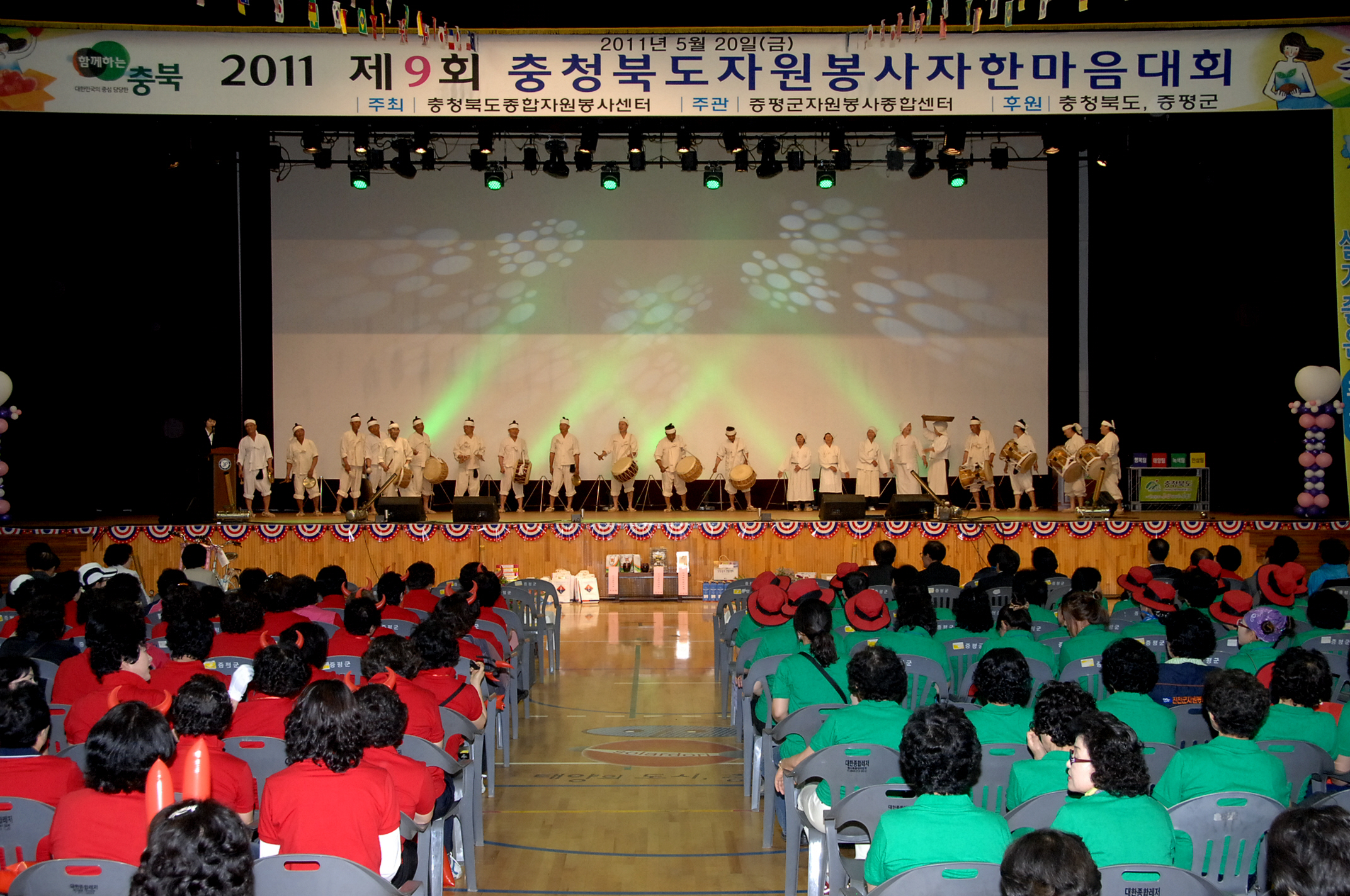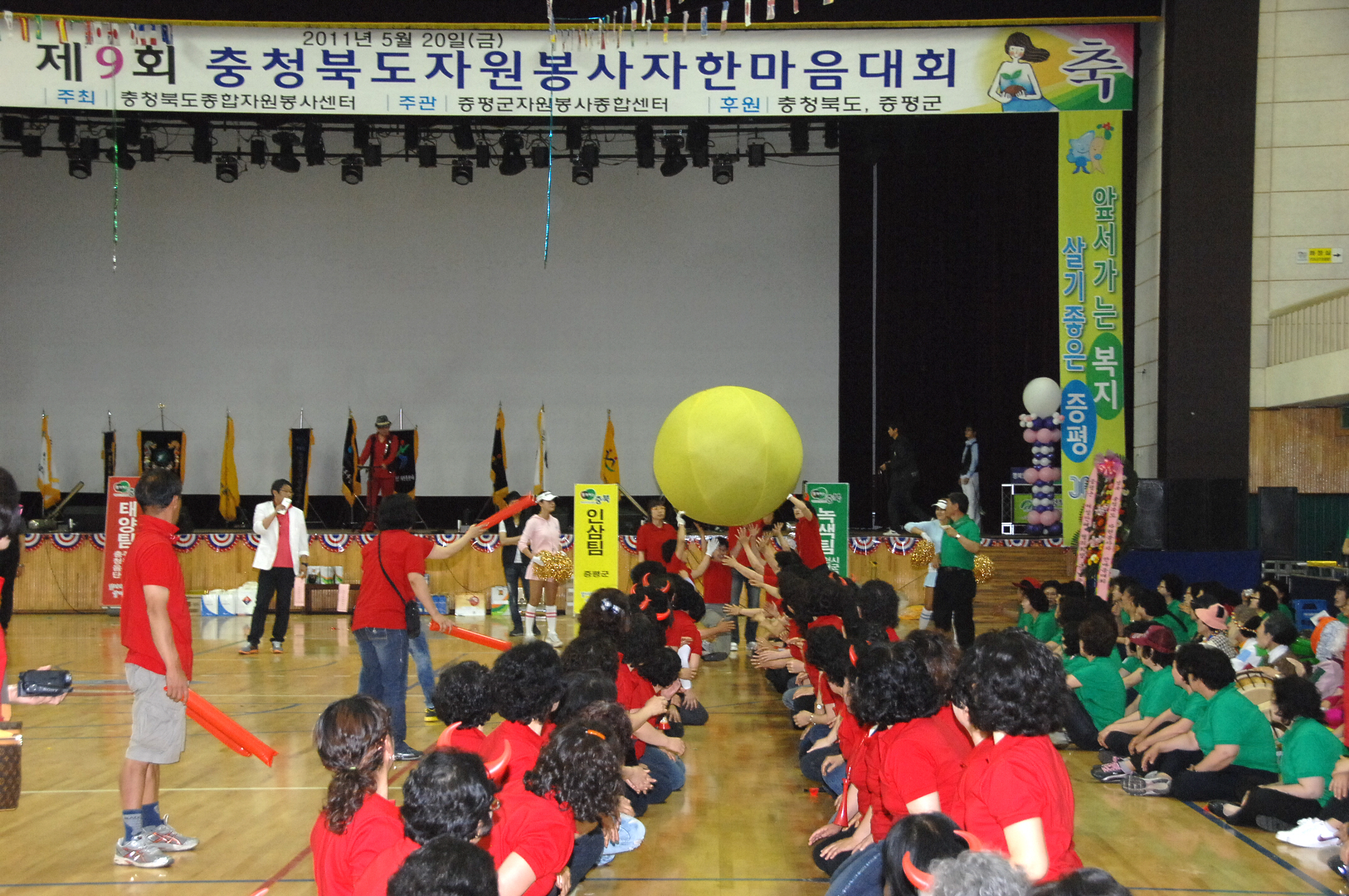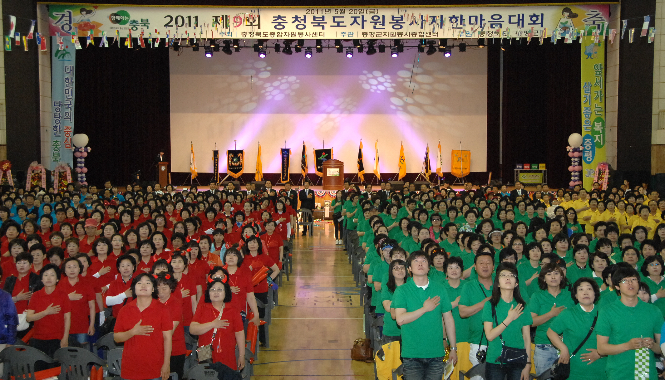 도민화합과 자원봉사 참여분위기 확산을 위한 ‘2011년도 제9회 자원봉사자 한마음대회’가 각 시·군 자원봉사자와 내·외빈 1,000여명이 참석한 가운데 20일 오전 10시 30분 증평종합스포츠센터에서 성황리에 열렸다.[보도자료실 참조]