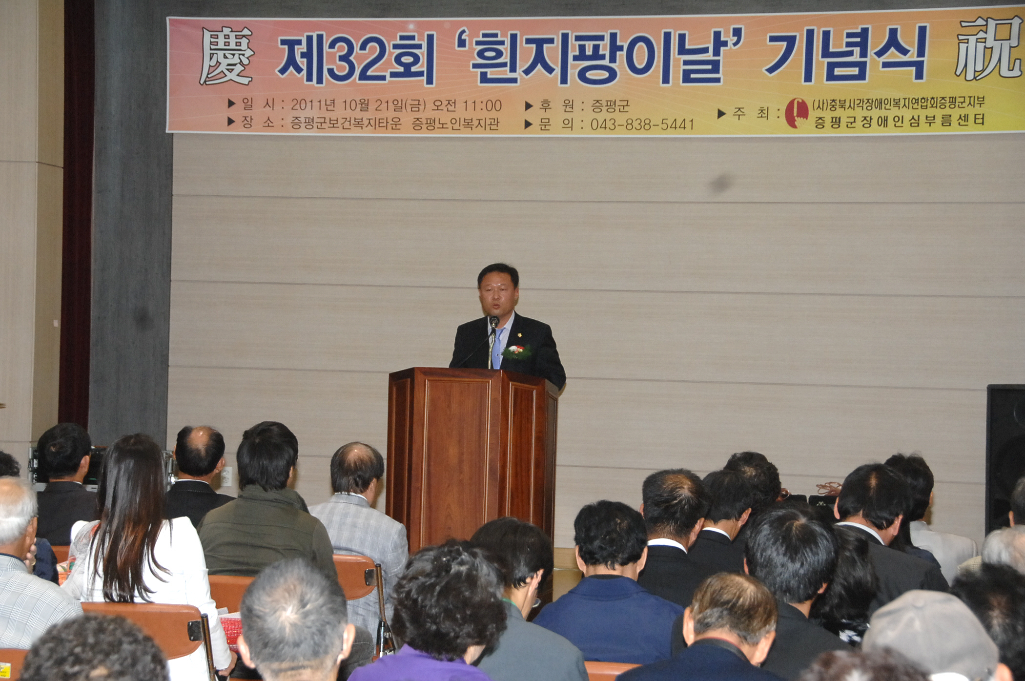 충북시각장애인복지연합회 증평군지부(지부장 김태헌)가 주관하는 제32회 흰 지팡이 날 기념식이 21일 오전 11시 증평군 노인복지관에서 열렸다.[보도자료실 참조]