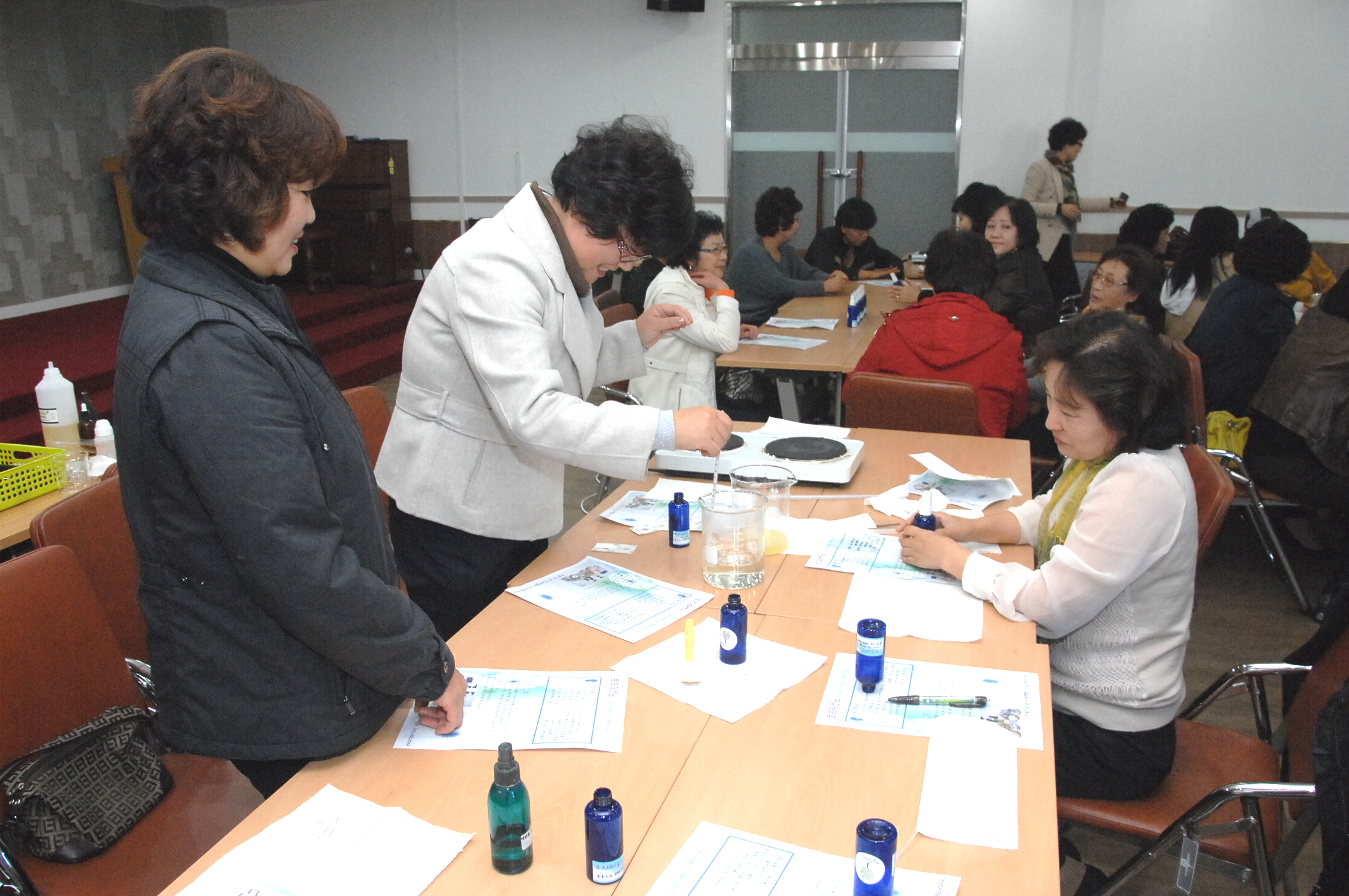 증평군 여성단체협의회는 26일 오전 10시 여성회관 1층 교육장에서 회원 30여명이 참석한 가운데 천연화장품(스킨, 에센스)을 만들었다. [보도자료실 참조]