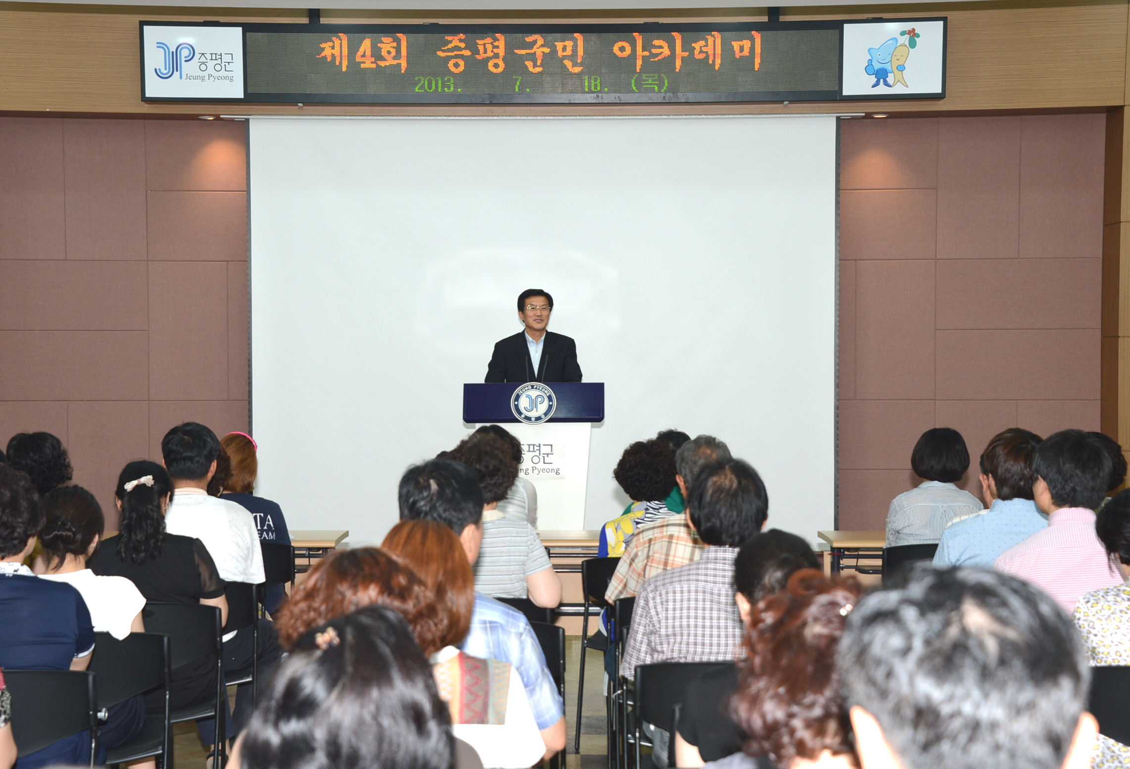 증평군에서는 오는 18일 오후 3시 군청 대회의실에서 아침편지 문화재단의 고도원 이사장을 초청하여 2013년도 제4회 군민 아카데미 강연회를 가졌다.[7월15일 보도자료 참조]