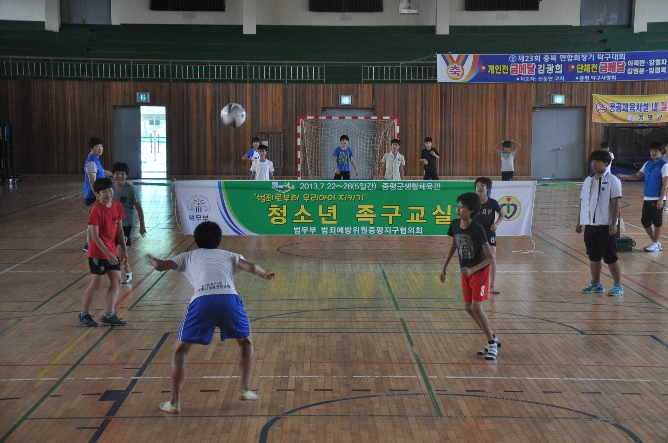 법무부 산하 범죄예방위원 증평지구협의회(회장 연광영)가 여름방학을 맞아 22일 청소년족구교실을 개강했다. [증평보도자료실 참조]