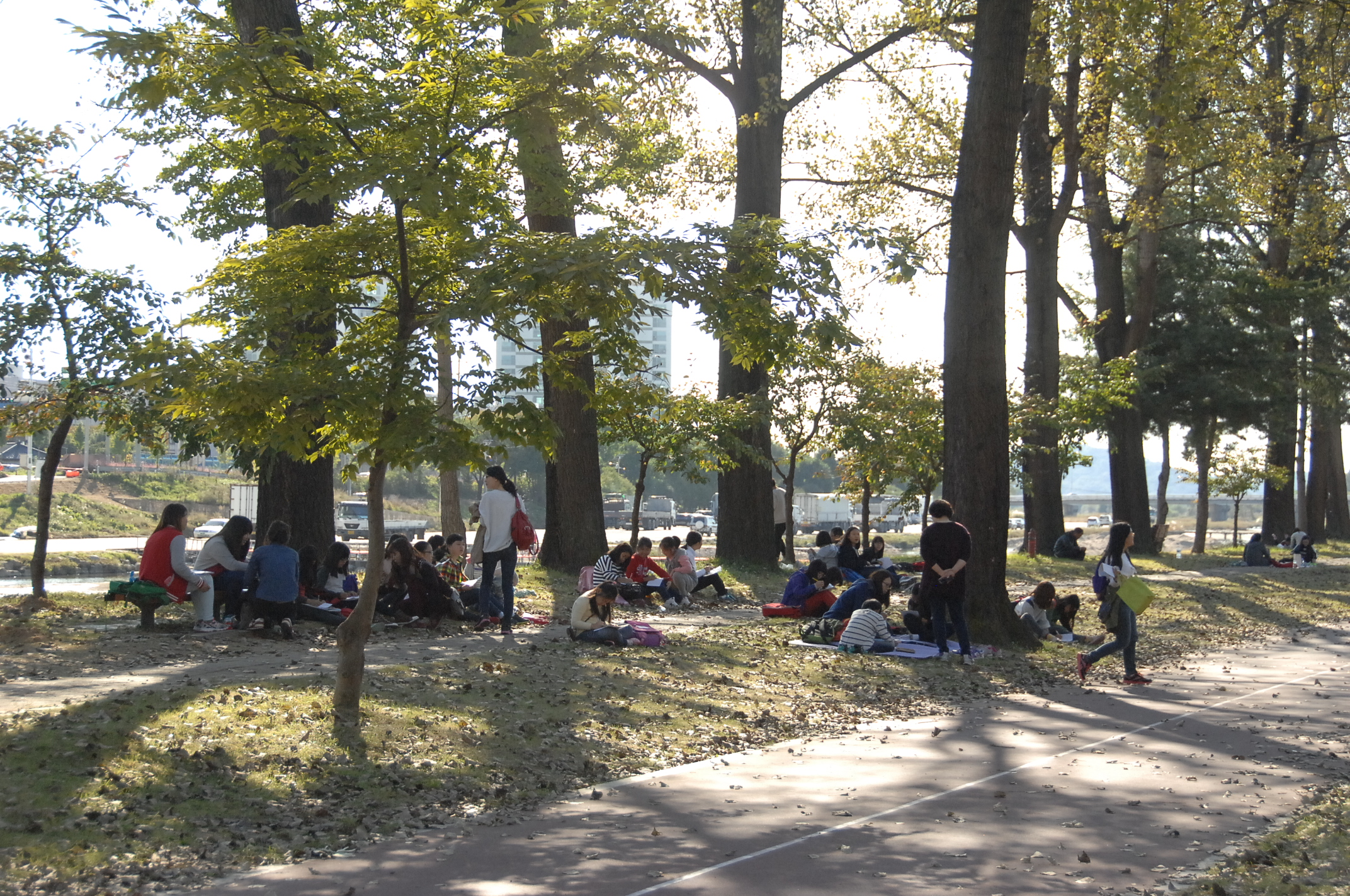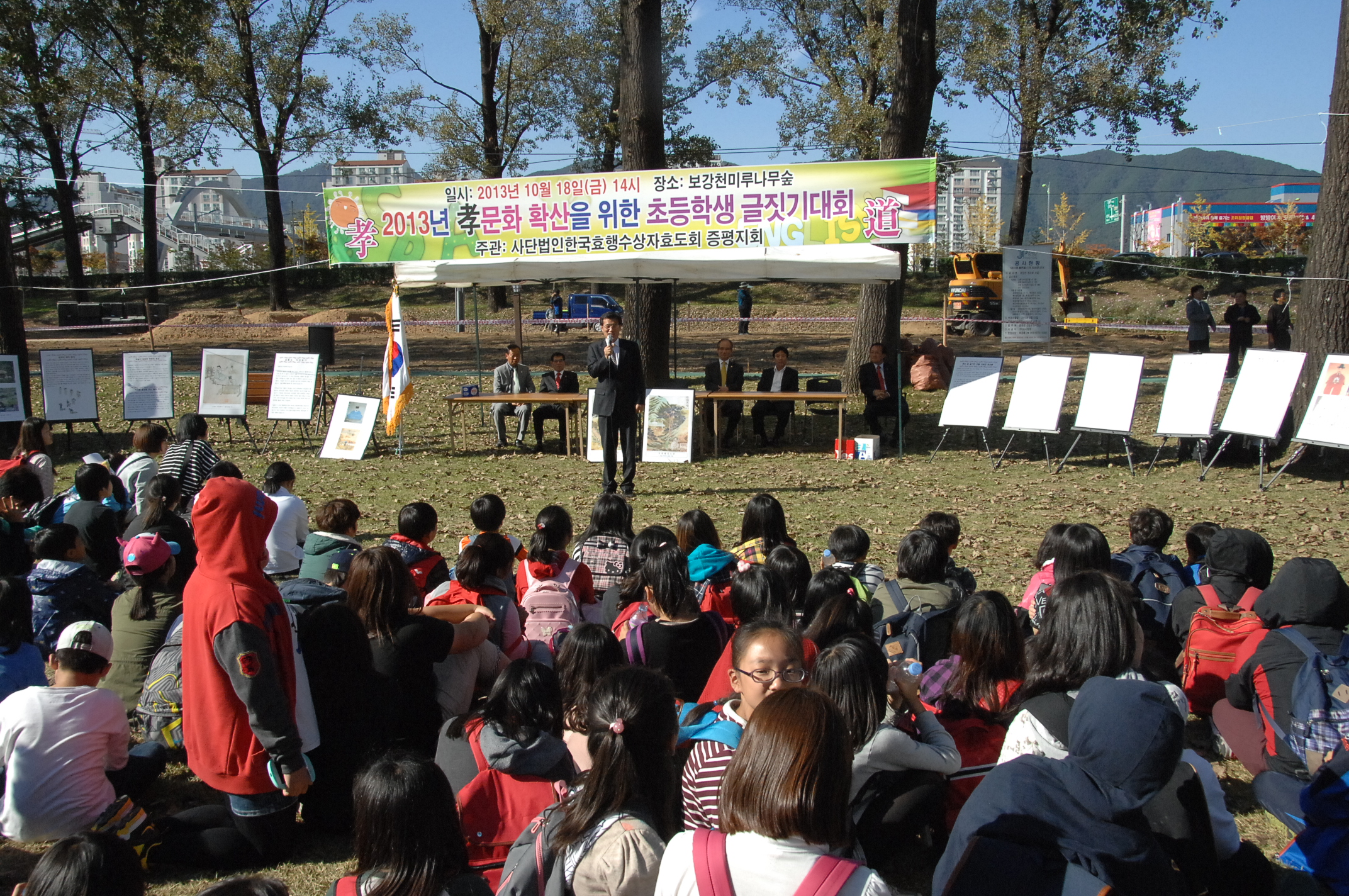 증평군에서는 18일 오후2시 한국효행수상자 효도회 증평지회(회장 김장응)주관으로 보강천 미루나무 숲에서 효에 대한 중요성을 일깨워 어르신을 공경하기 위한 ‘효문화 확산운동 글짓기대회’가 개최됐다. [증평보도자료실 참조]
