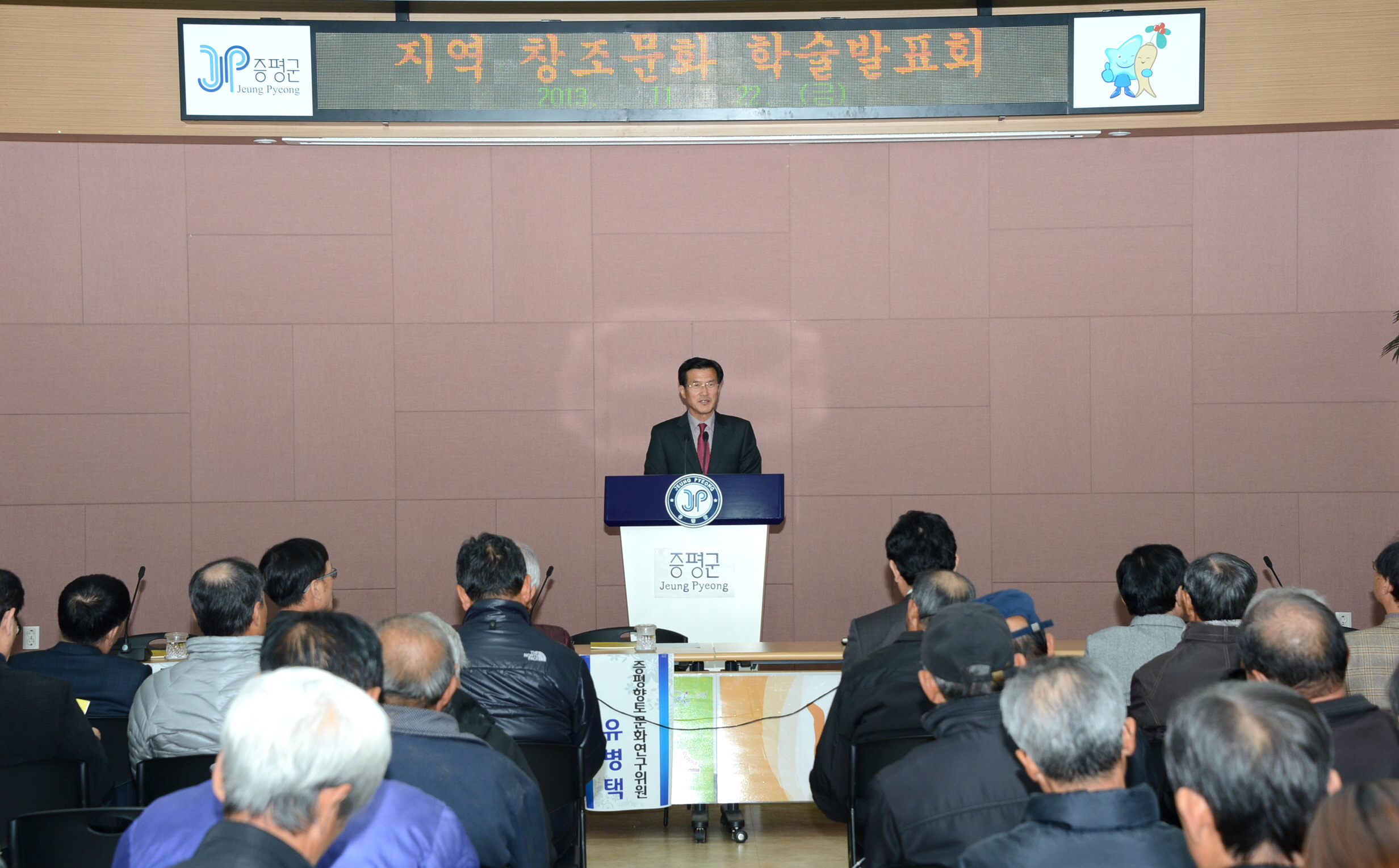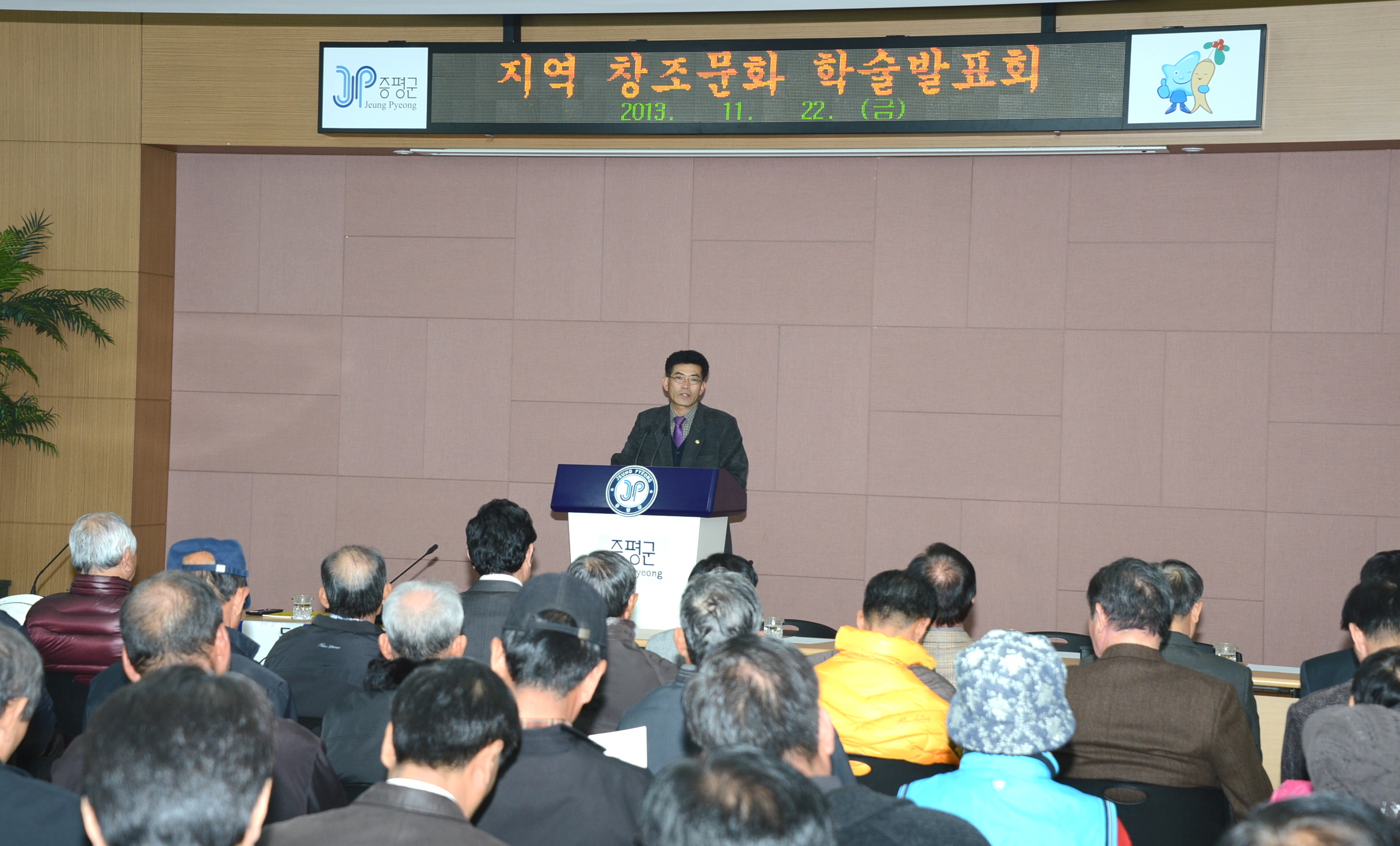 증평군에서는 22일 오후3시에 군청 대회의실에서 향토문화연구회원 및 주민 등 200여명이 참석한 가운데 증평향토문화연구회(회장 권성업)주관으로 ‘지역창조문화 학술대회’를 개최됐다. [보도자료실 참조]