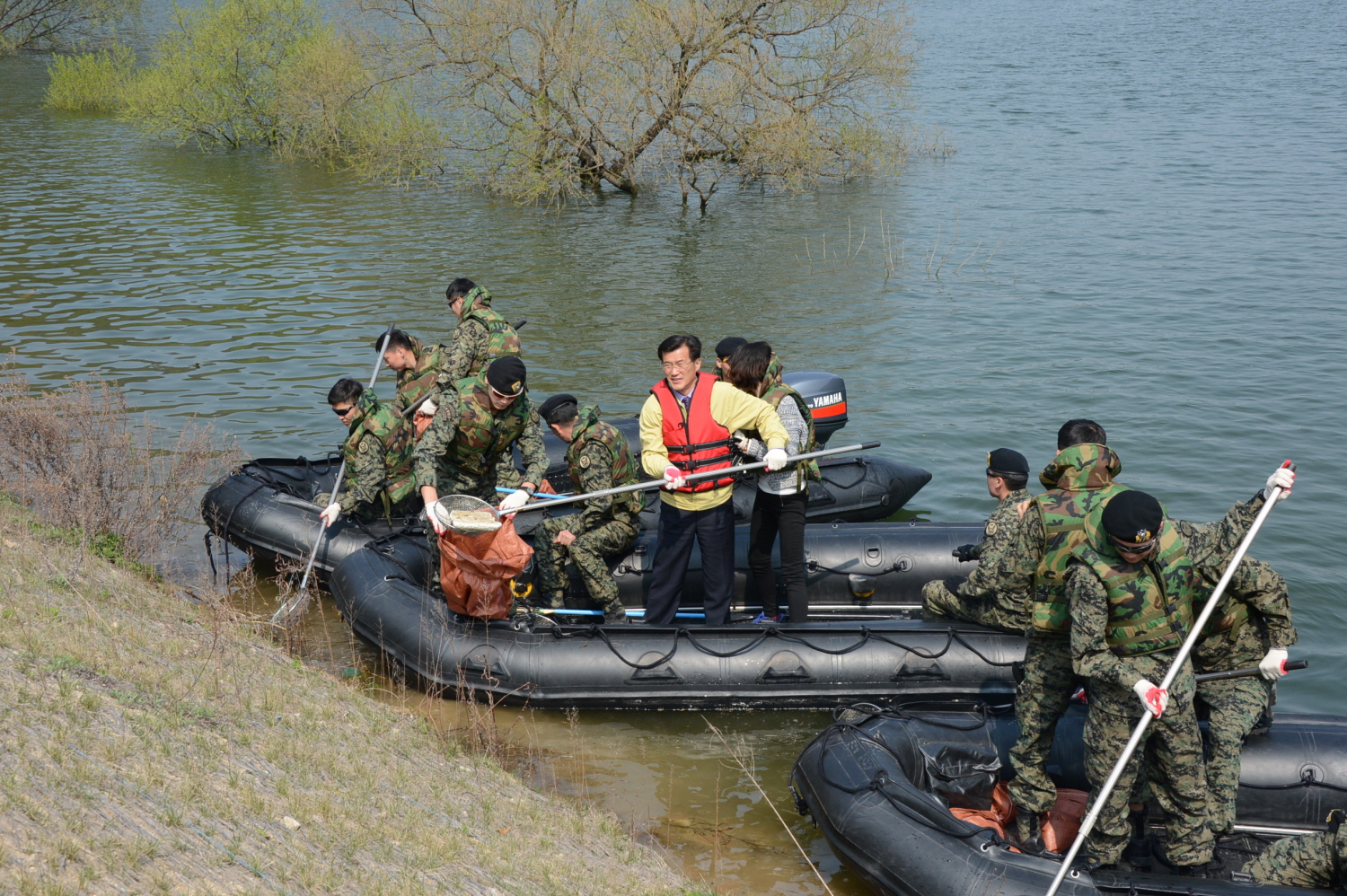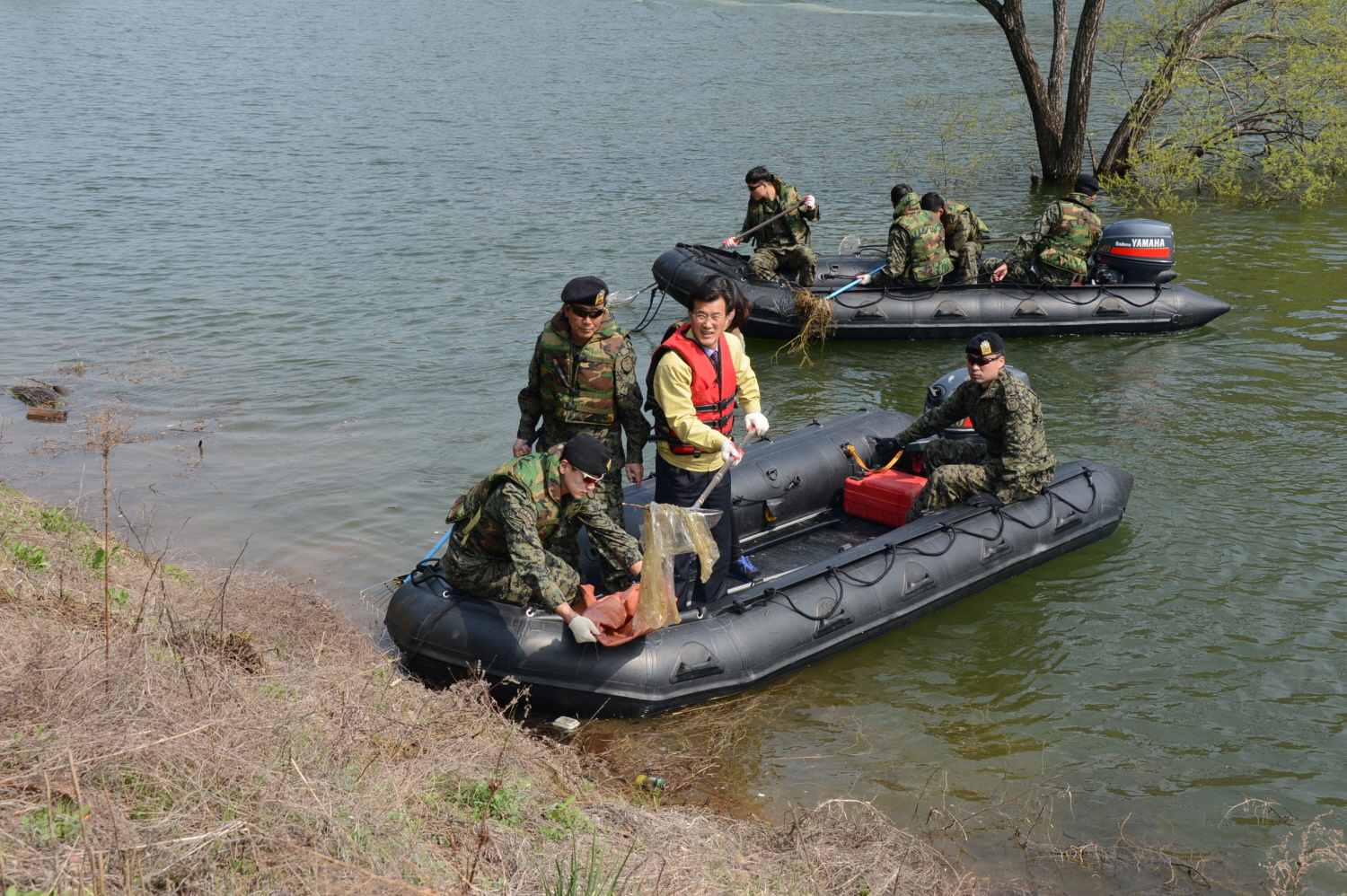 증평 민‧관‧군, 합동 삼기저수지변 환경정화 실시
