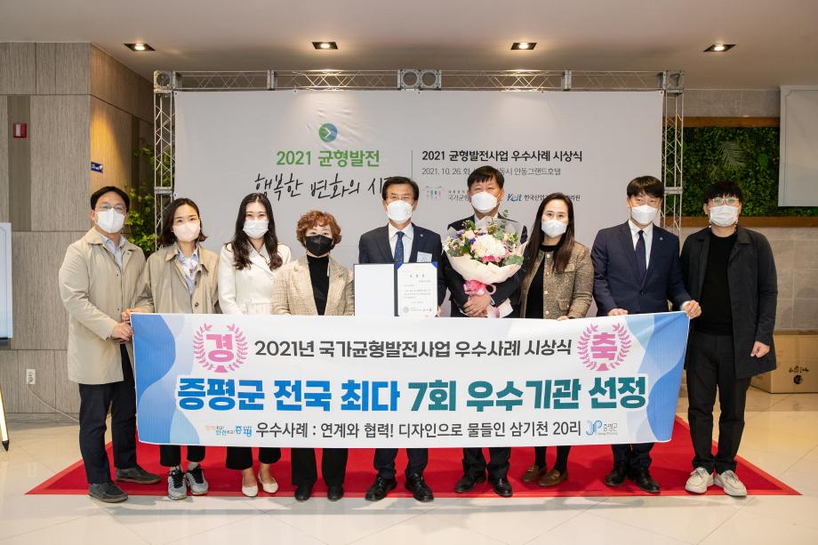 증평군이 대통령직속 국가균형발전위원회(위원장 김사열)가 주관한 균형발전사업 시상식에서 우수기관으로 선정됐다.