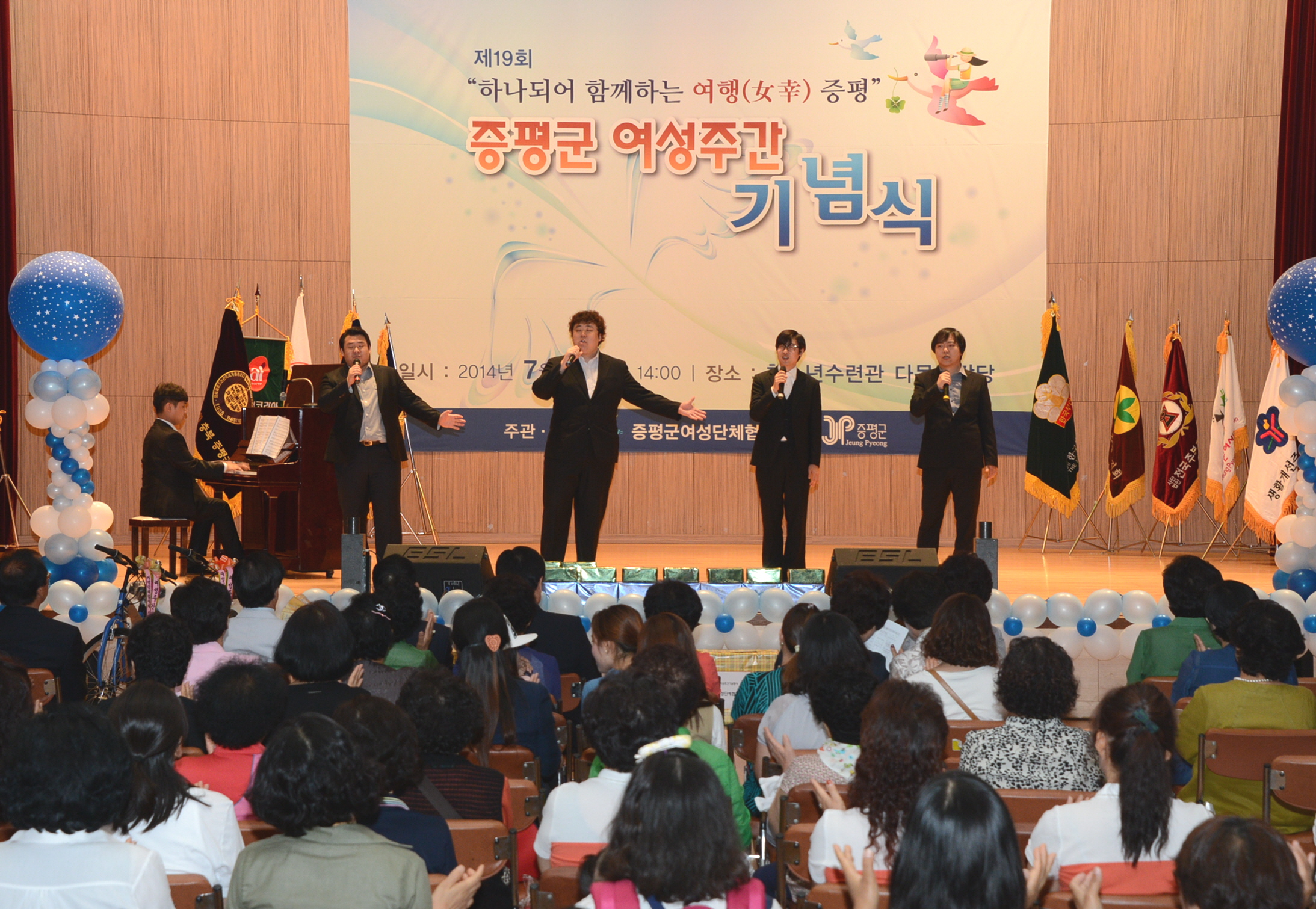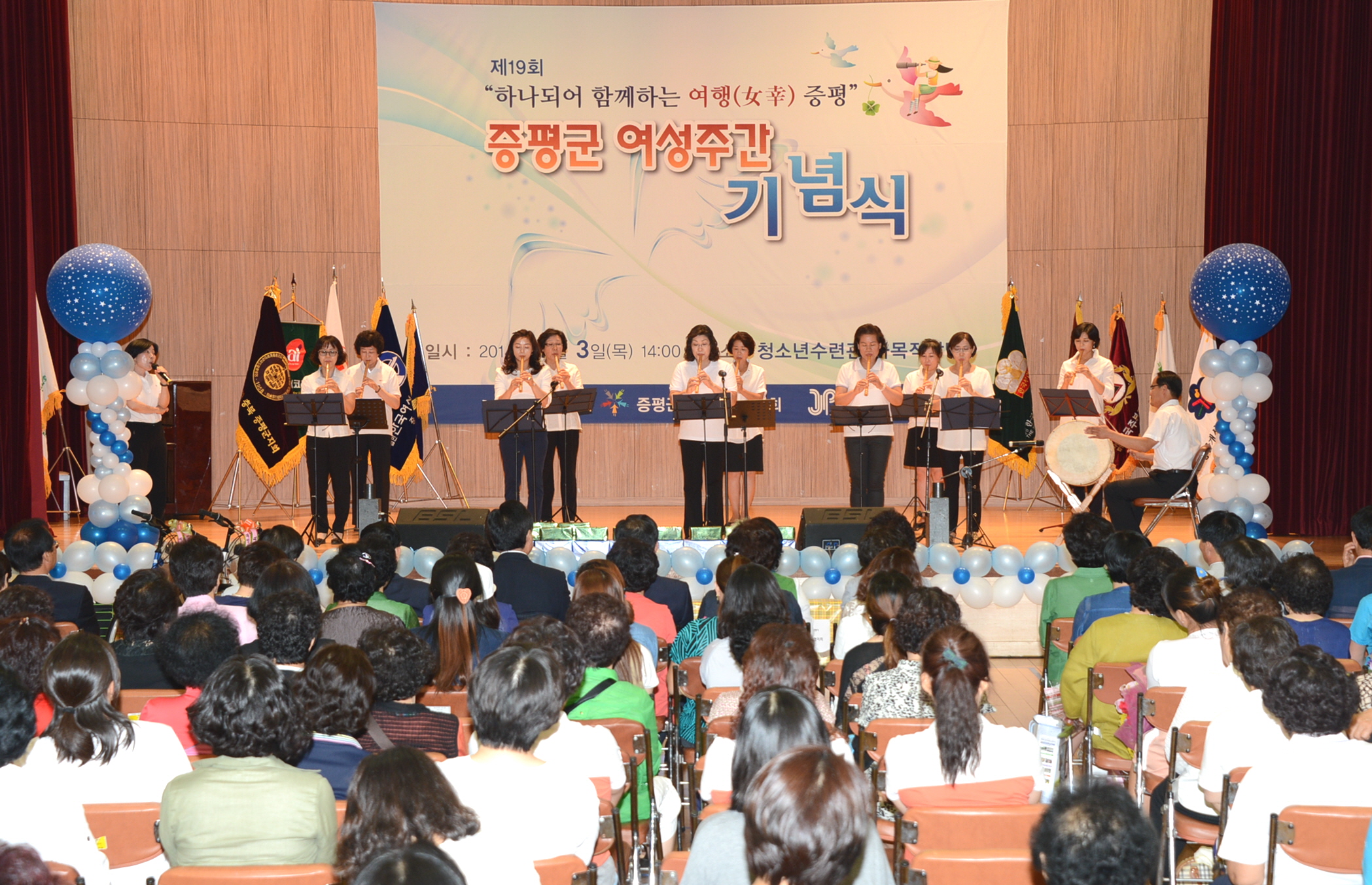 증평군여성단체협의회(회장 강춘희)는 3일 증평군청소년수련관에서 제19회 여성주간을 맞아 ‘하나 되어 함께하는 여행(女幸) 증평’을 주제로 단체회원, 결혼이민여성, 지역주민 등 약 300여명이 참여한 가운데 기념행사를 가졌다. [보도자료실 참조]