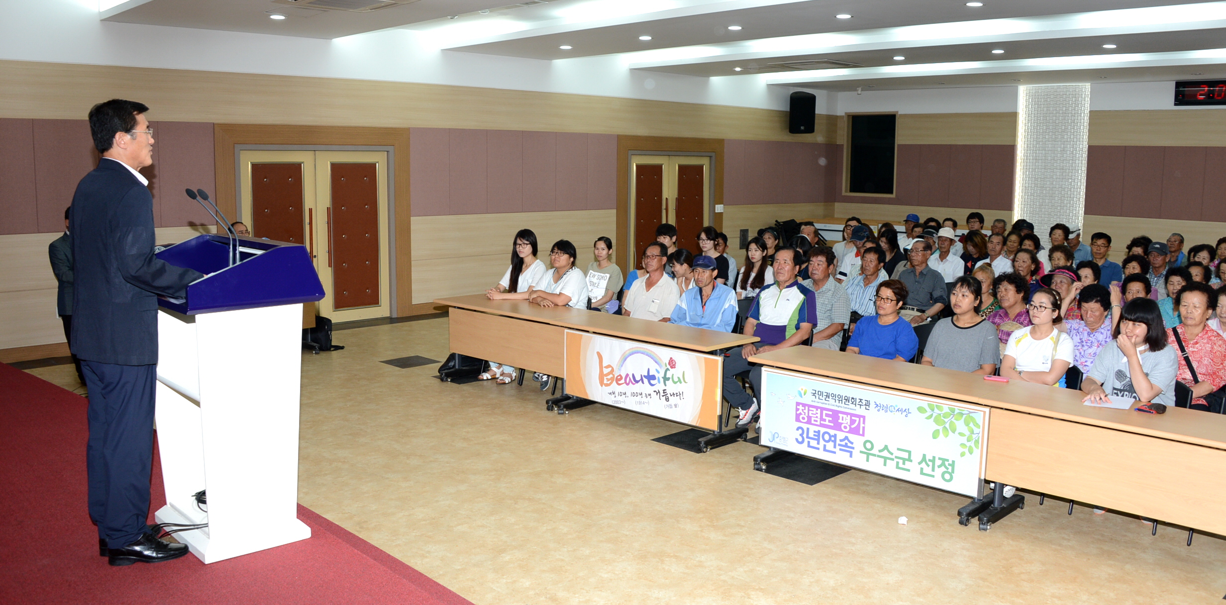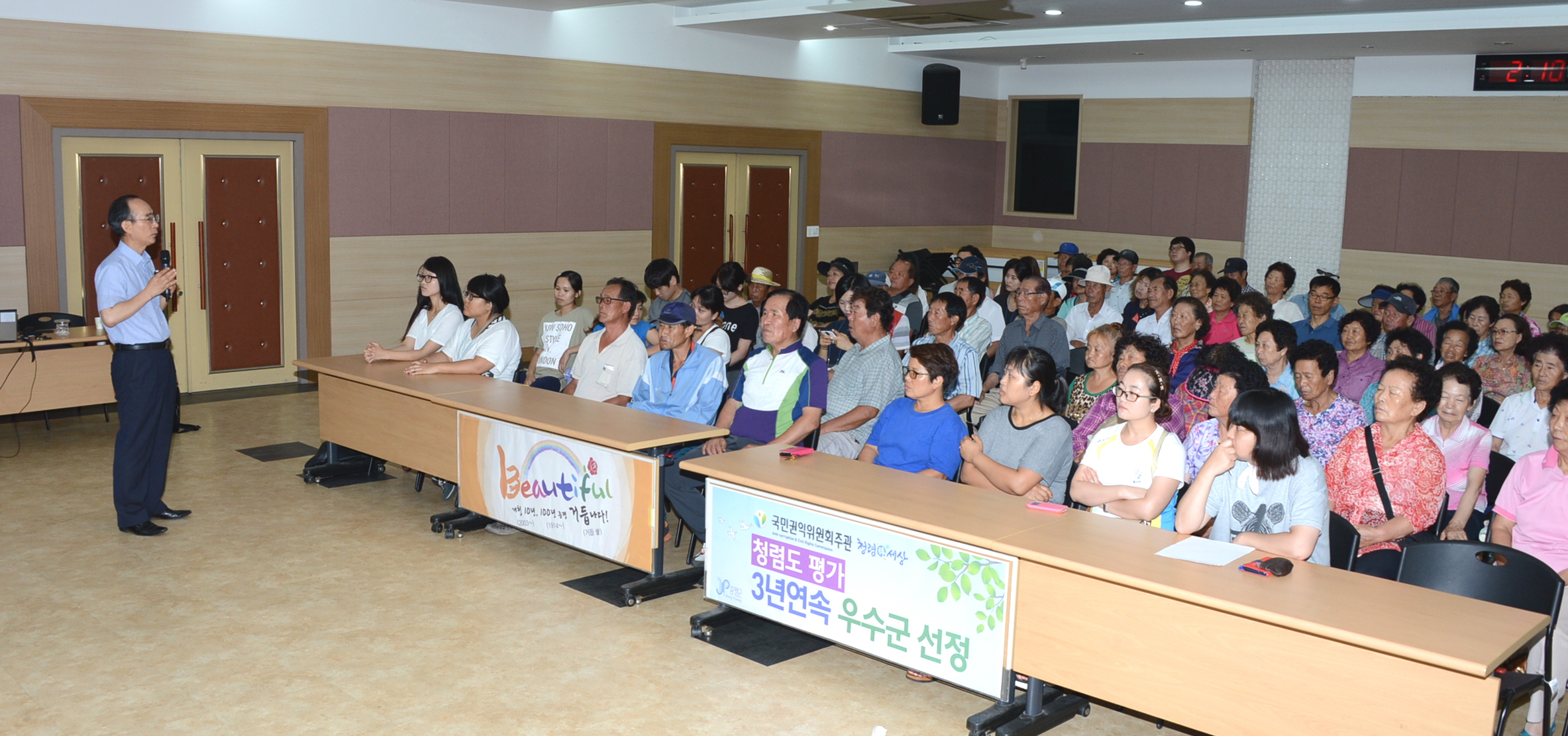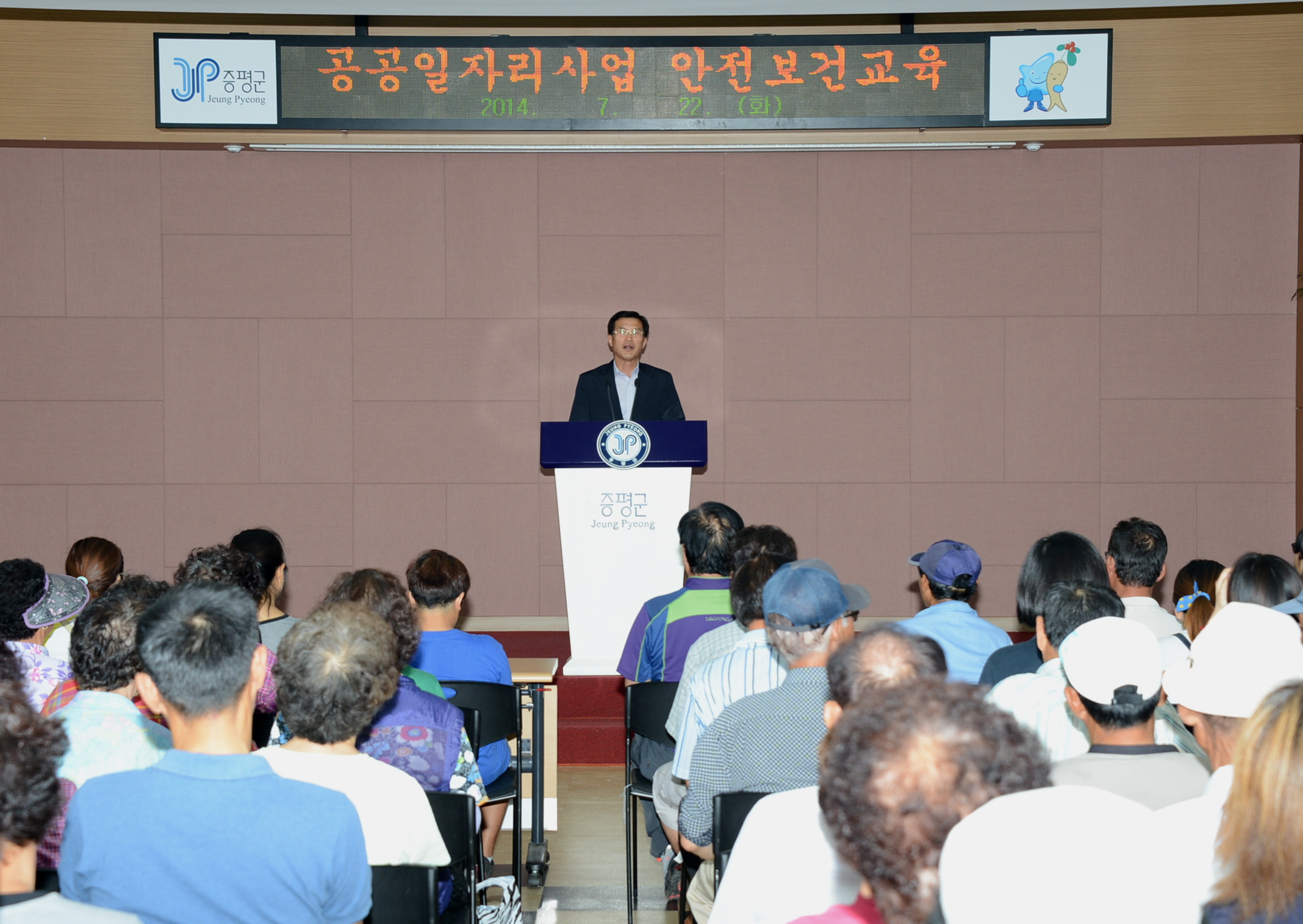 증평군은 공공근로사업 및 지역공동체일자리사업 근로자의 안전사고 예방을 위해 22일 오후2시 사업 참여자 96여명을 대상으로 증평군청 대회의실에서 ‘안전보건교육’을 실시했다. [보도자료실 참조]