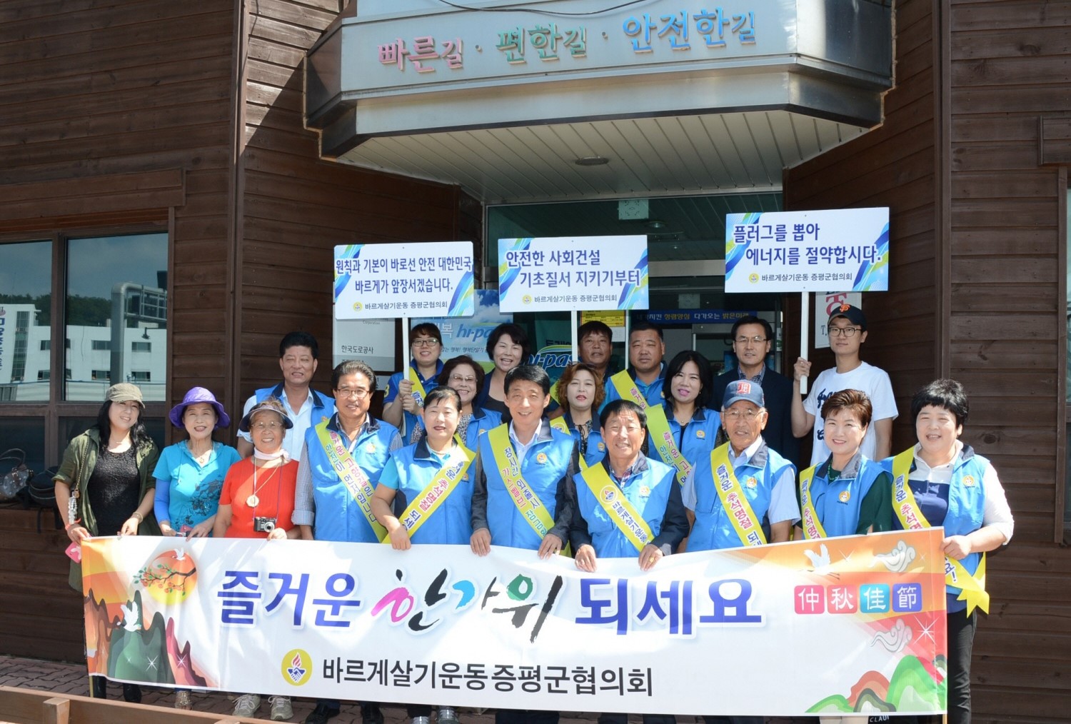 바르게살기운동증평군협의회(회장 김규환)는 5일 오전 11시 증평 톨게이트에서 추석 귀성객 맞이 환영 캠페인을 가졌다. [보도자료실 참조]