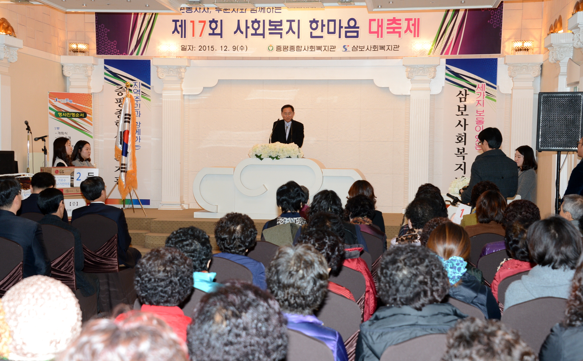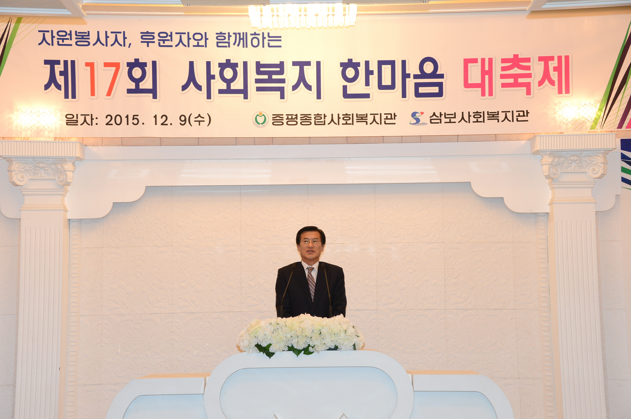 제17회 사회복지 한마음대축제 행사가 홍성열군수, 우종한 군의장을 비롯해 자원봉사자 및 후원자 등 100여명이 참석한 가운데 증평읍 디펠리스웨딩홀에서 개최됐다.(보도자료실 참조)