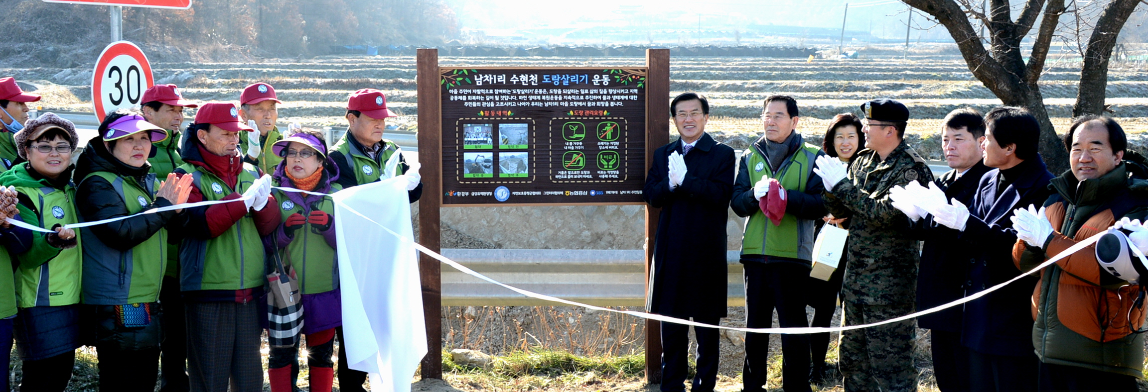 증평군은 28일 오전11시 증평읍 남차1리에서 홍성열 군수를 비롯해 자연보호증평군협의회 회원들과 마을주민 등 100여명이 참석한 가운데 수현천 도랑살리기 현판식을 가졌다.(보도자료실 참조)