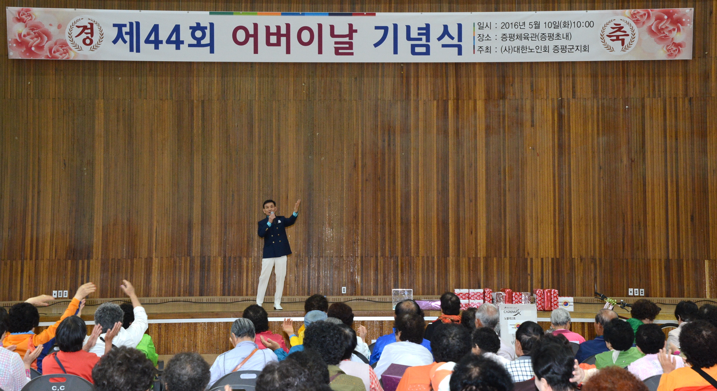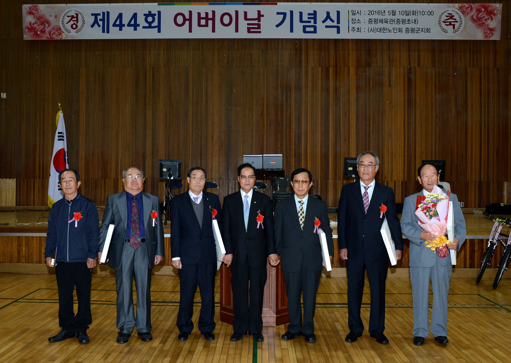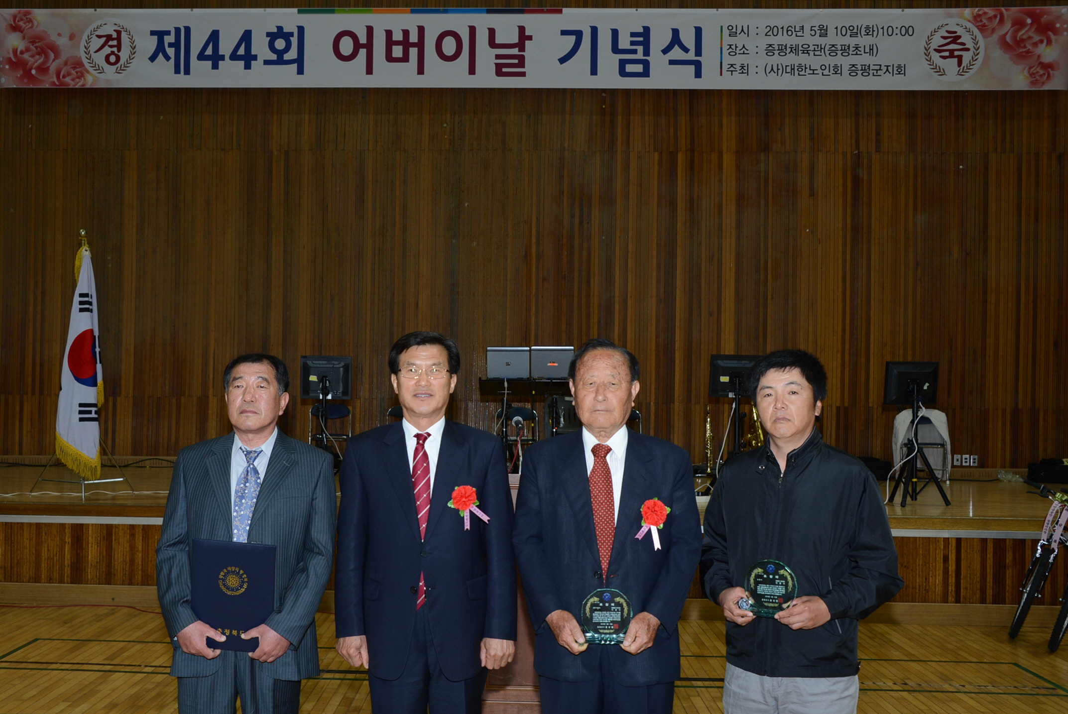 증평군은 10일 증평체육관에서 (사) 대한노인회 증평군지회(회장 김재성) 주관으로 홍성열 군수, 우종한 군 의장, 경대수 국회의원을 비롯해 지역 내 유관기관장 및 어르신 등 1천여명이 참석한 가운데 제44회 어버이날 기념행사를 성대하게 열렸다.(9일 보도자료 참조)