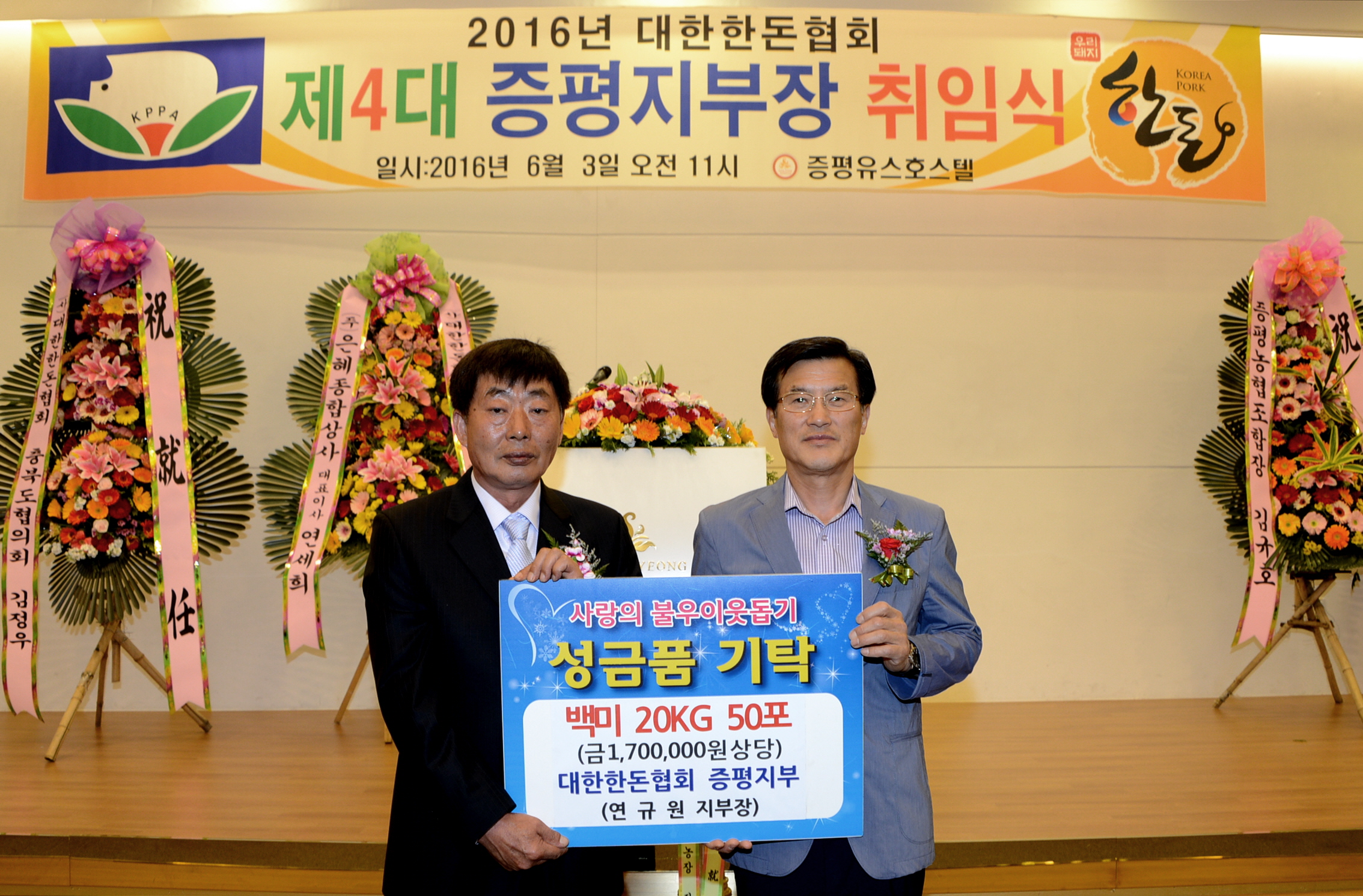 한돈협회 증평군지부(지부장 연규원)은 3일 어려운 이웃을 위해 써달라며 쌀 1,000kg(50포/20kg)을 기증했다.(보도자료실 참조)
