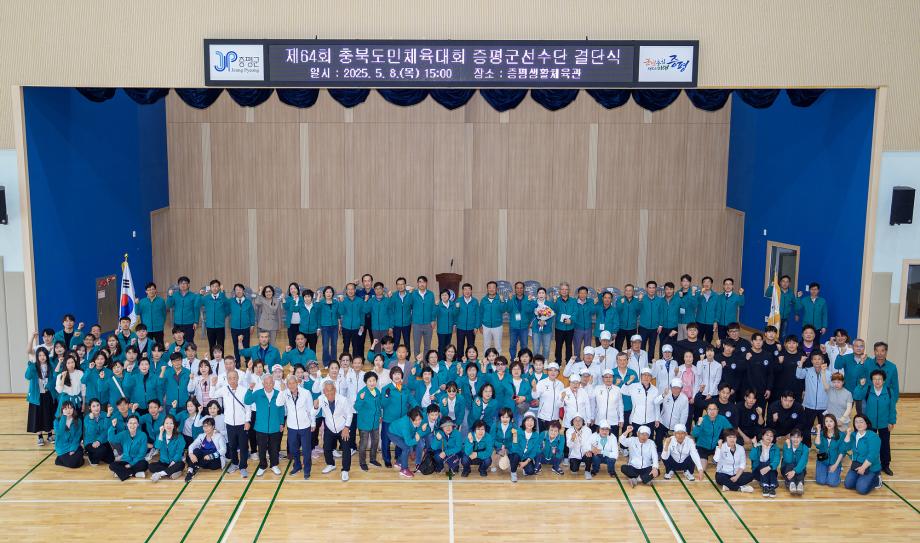 충북 증평군이 8일 증평생활체육관에서 제64회 충북도민체육대회에 참가하는 증평군 선수단 결단식을 갖고 필승 의지를 다졌다.