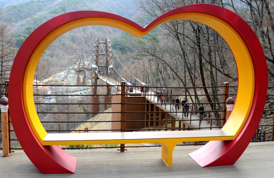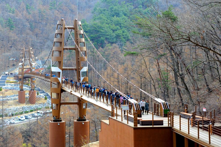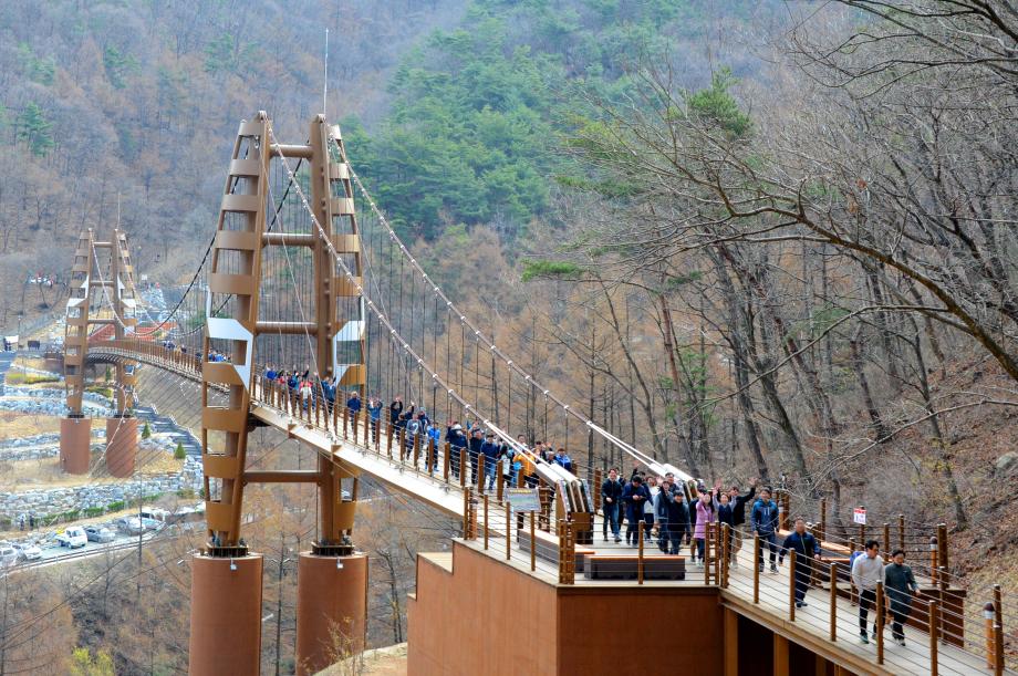 증평군 증평읍 율리에 위치한 좌구산 명상구름다리가 개장한지 10개월 만에 누적 방문객 10만명을 넘어섰다.
