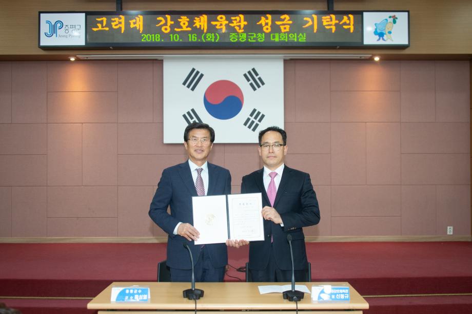 증평 고려대 강호체육관, 수련생들 사랑의 성금 기부