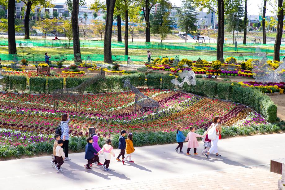 전시장을 찾으면 형형색색의 국화꽃 2만본과 함께 풍요로운 가을의 정취를 만끽할 수 있다.