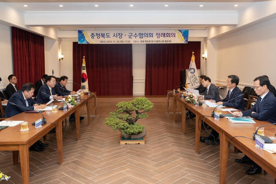 충북시장군수협의회 11월 정례회의가 26일 증평군 도안면 연촌리 에듀팜 특구(블랙스톤 벨포레)에서 개최됐다.