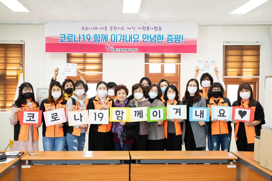 증평군자원봉사종합센터는 28일 증평읍 장동리 증평군자원봉사종합센터에서 코로나19 확산 방지를 위해 최선을 다하고 있는 지역 내 의료·방역 관계자에게 전할 응원키트 50개를 제작했다.